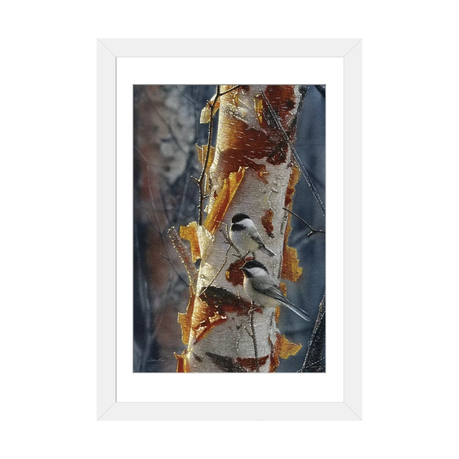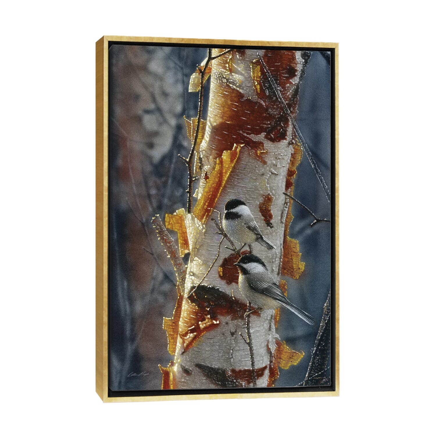 iCanvas "Black-Capped Chickadees - Sunlit Birch II" by Collin Bogle Framed Canvas Print