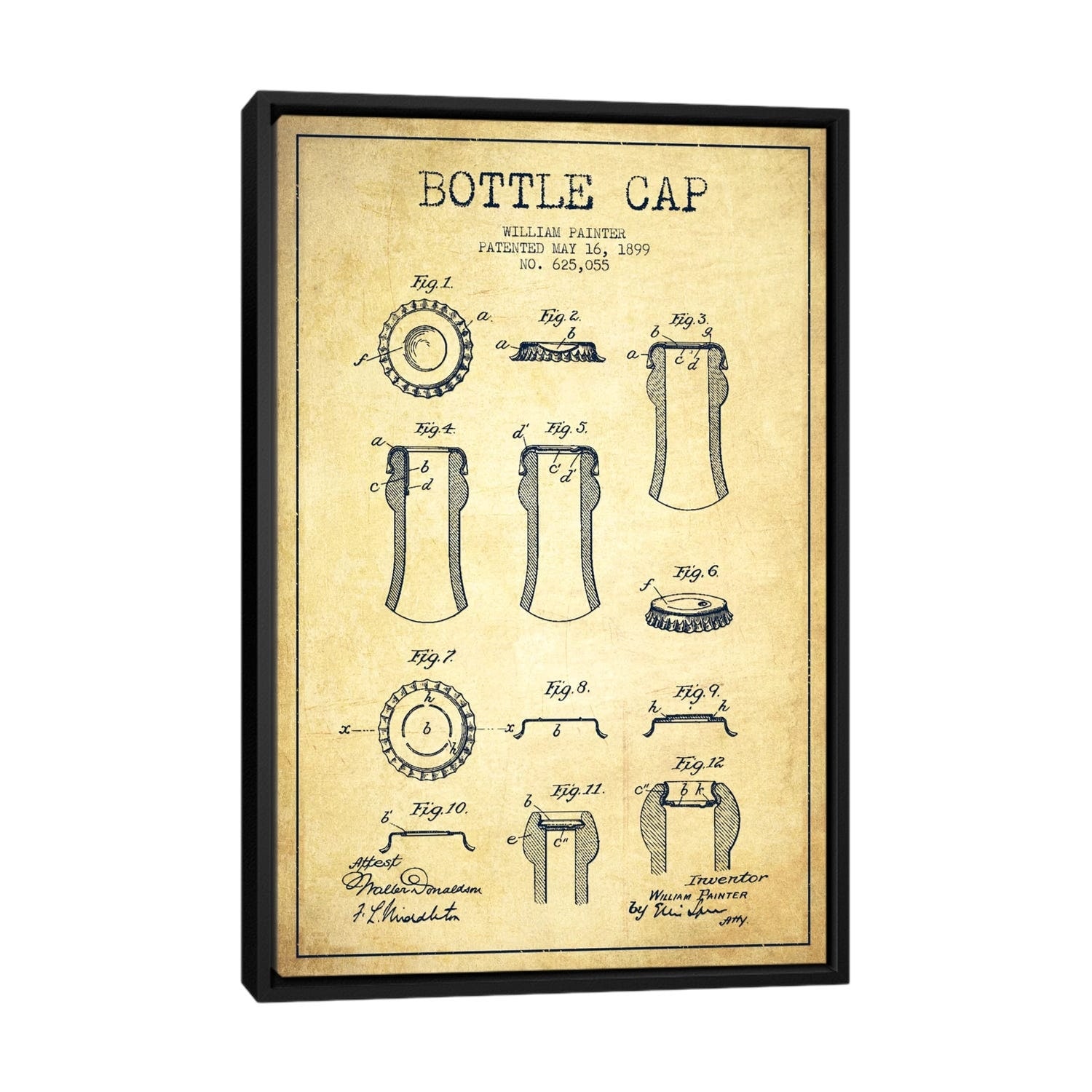 iCanvas "Bottle Cap Vintage Patent Blueprint" by Aged Pixel Framed Canvas Print