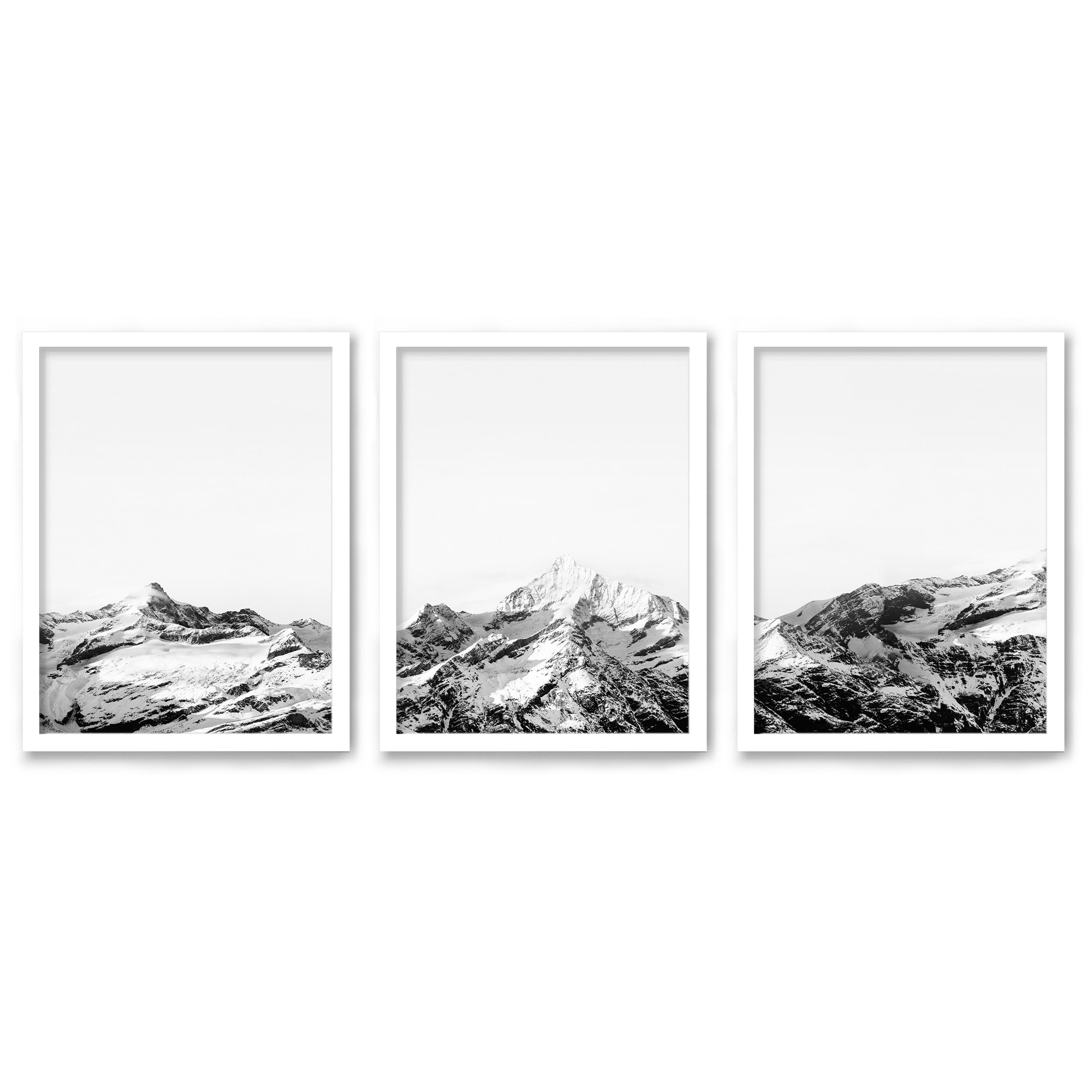 Snowy Mountain Caps By Shumkina 3 Piece Framed Print Wall Art Set