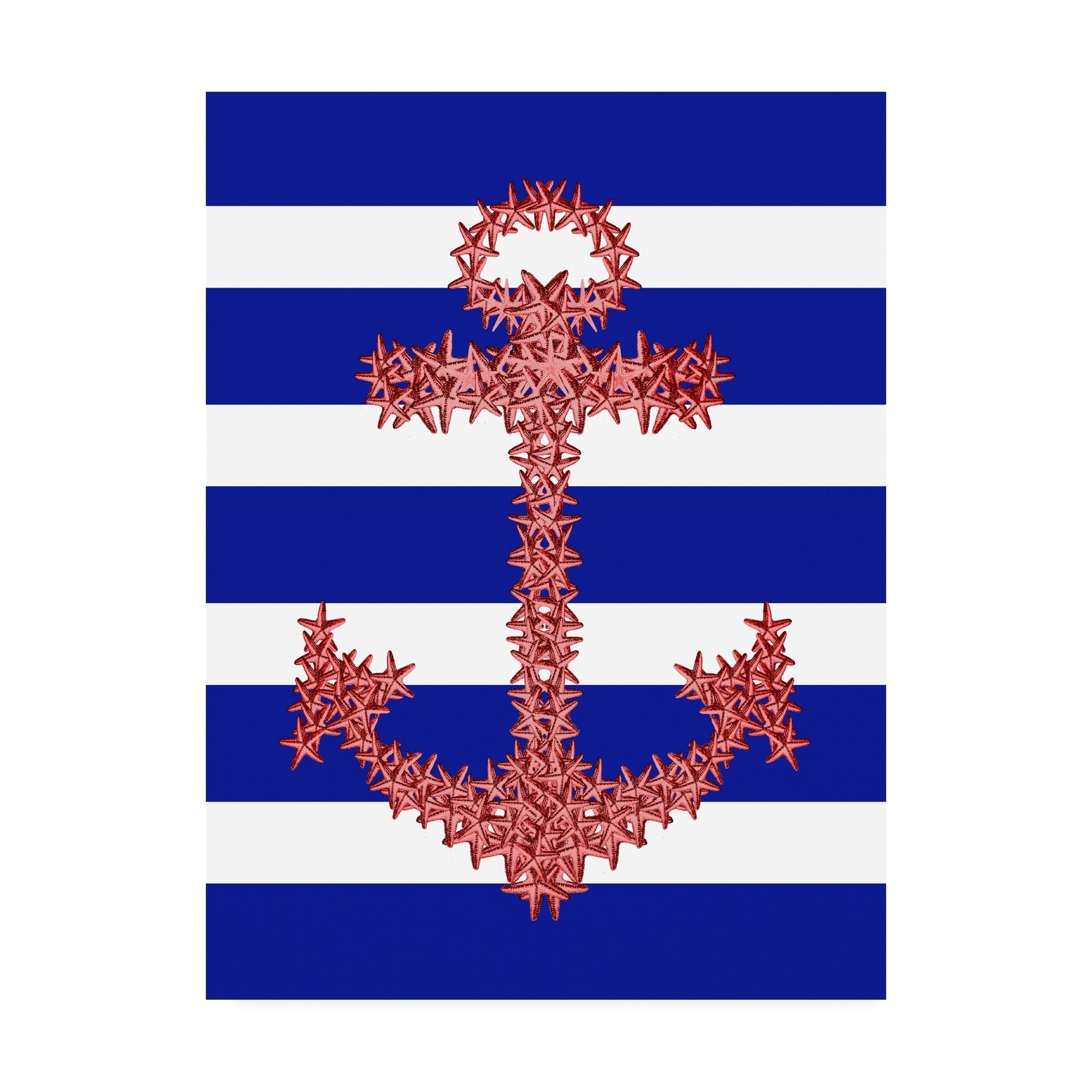 Fab Funky Red Starfish Anchor on Blue and White Canvas Art