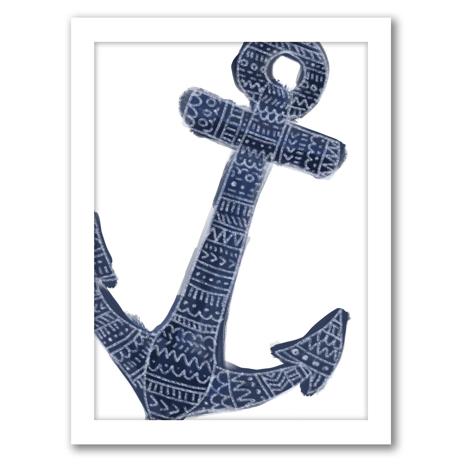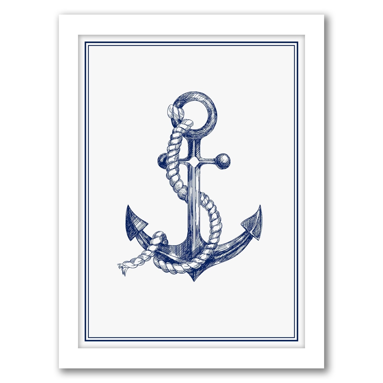 Stupell Striped Anchor Phrase Nautical Beach Illustration Framed Wall Art, Design by Raquel Maciel - Blue