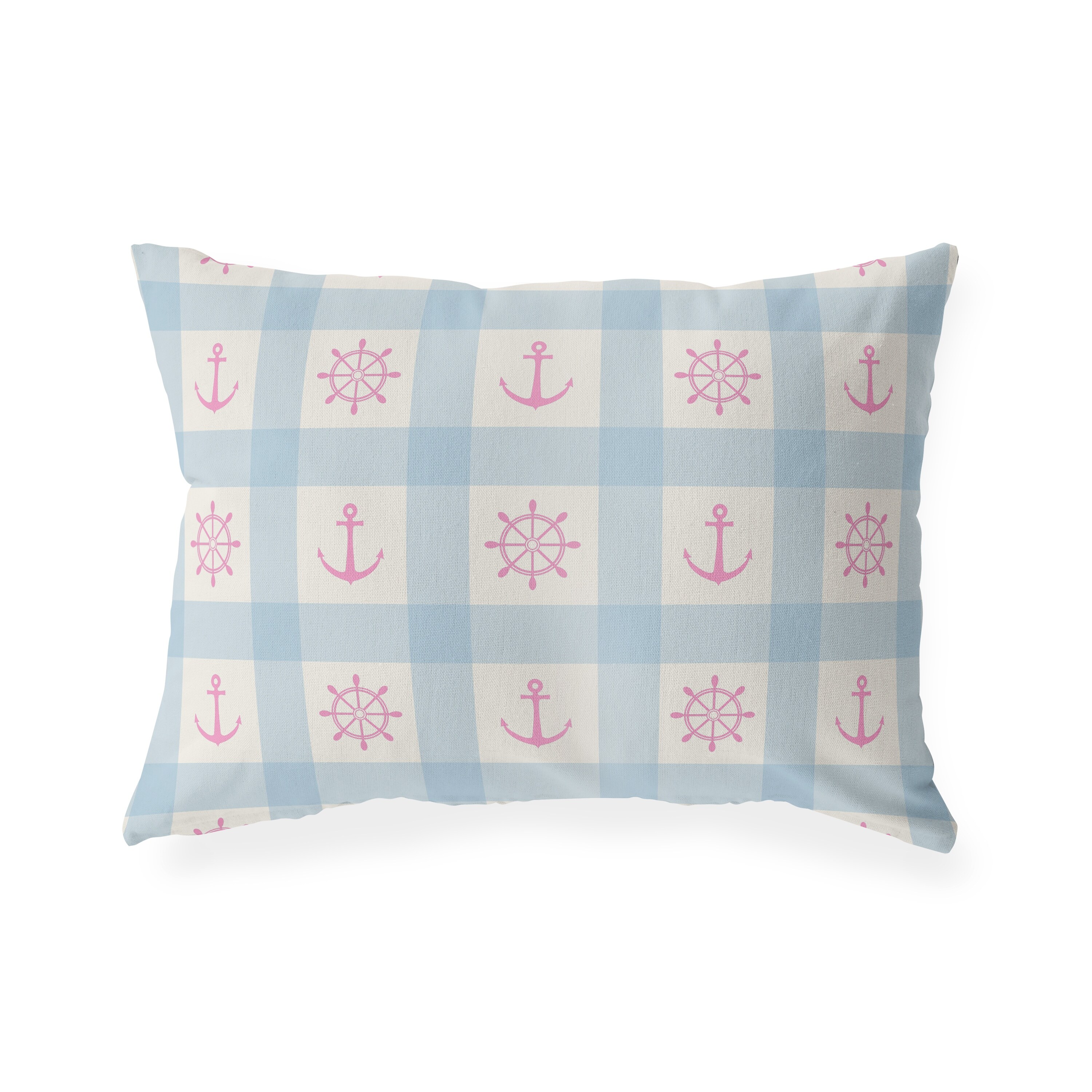 ANCHOR GALORE LIGHT BLUE AND PINK Indoor|Outdoor Lumbar Pillow By Kavka Designs - 20X14
