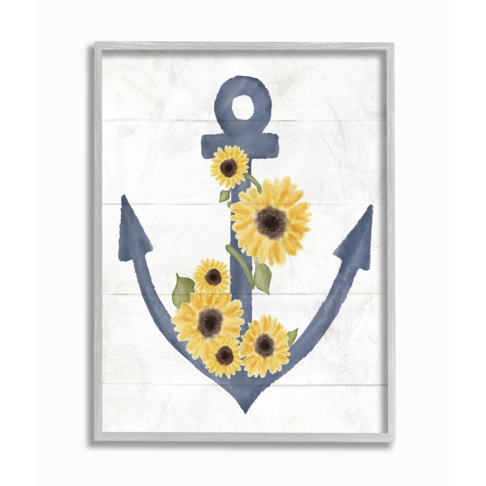 Stupell Countryside Anchor with Sunflower Vine Floral Detail Framed Wall Art - Multi-Color