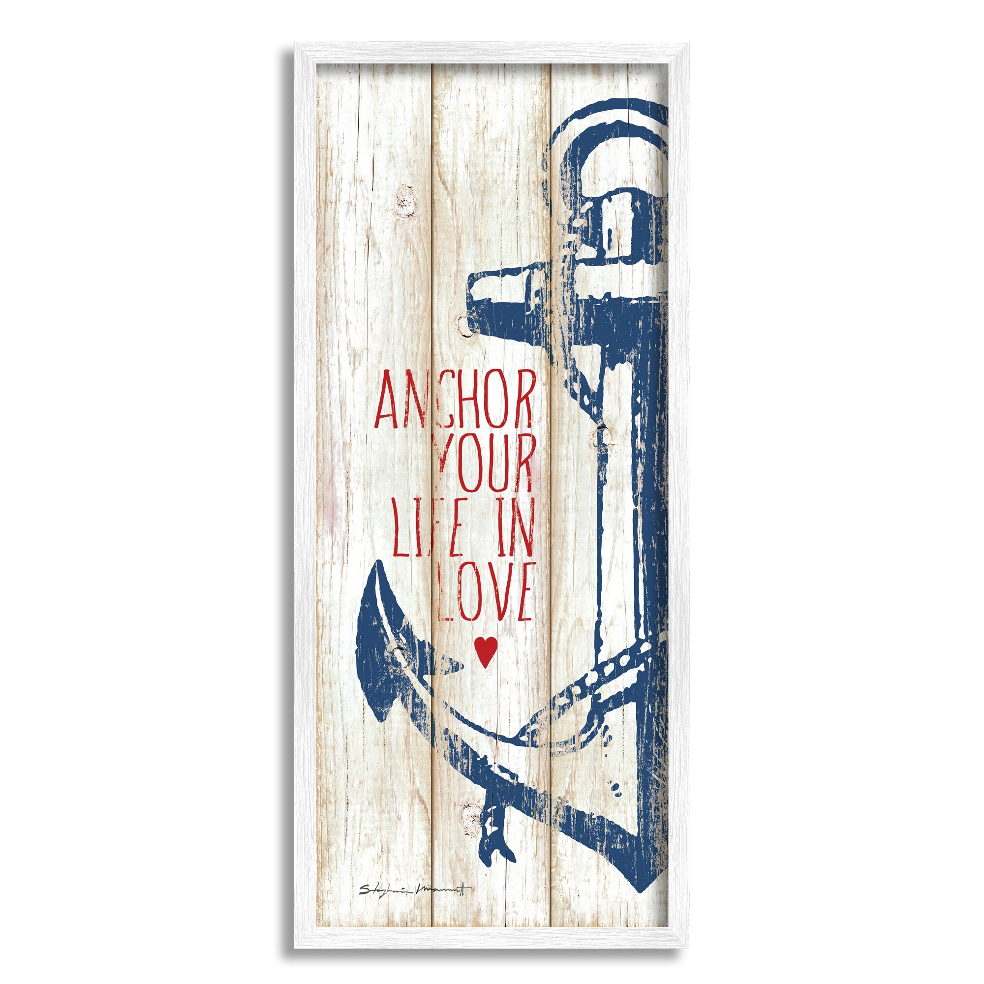 Stupell Industries Anchor Your Life in Love Quote Red Heart Framed Wall Art - Blue