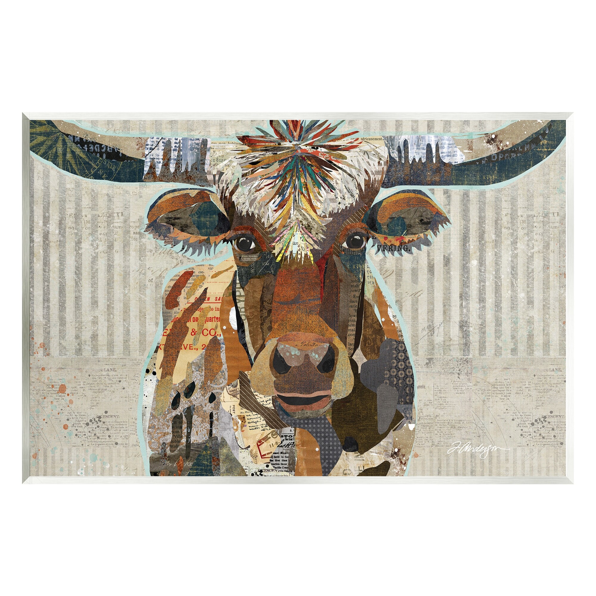 Stupell Industries Farm Cattle Striped Pattern Collage Wall Plaque, Design By Traci Anderson