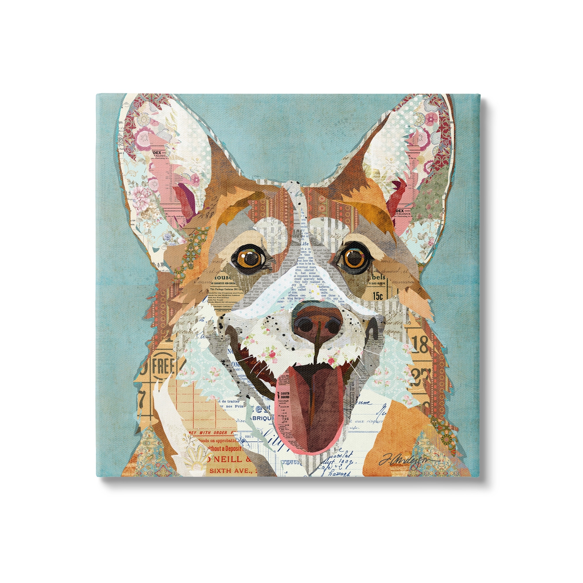 Stupell Vintage Ephemera Corgi Portrait Collage Stretched Canvas Wall Art, Design by Traci Anderson