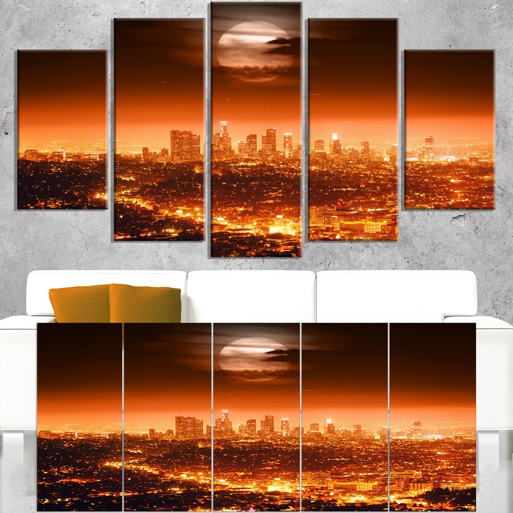 Dramatic Full Moon over Los Angeles - Cityscape Canvas print - Red