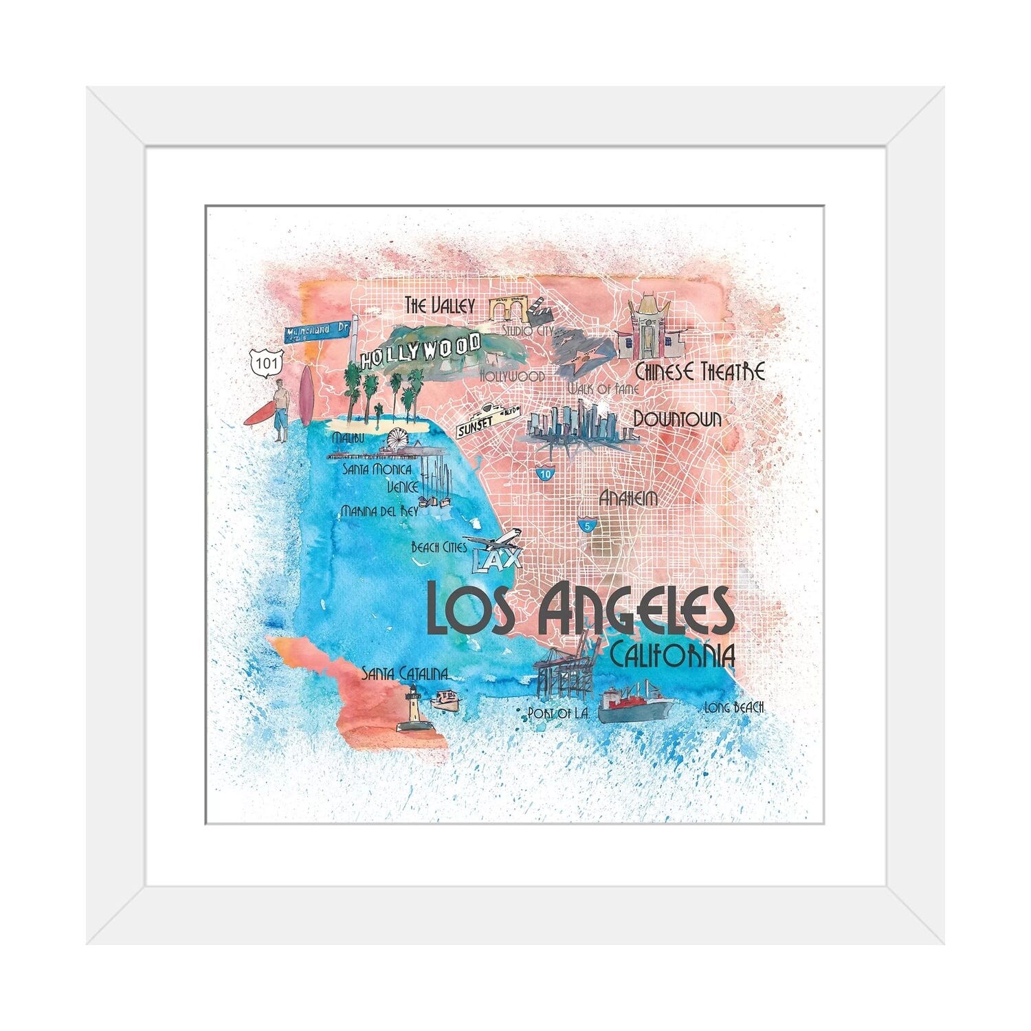 iCanvas "Los Angeles USA Illustrated Map" by Markus & Martina Bleichner