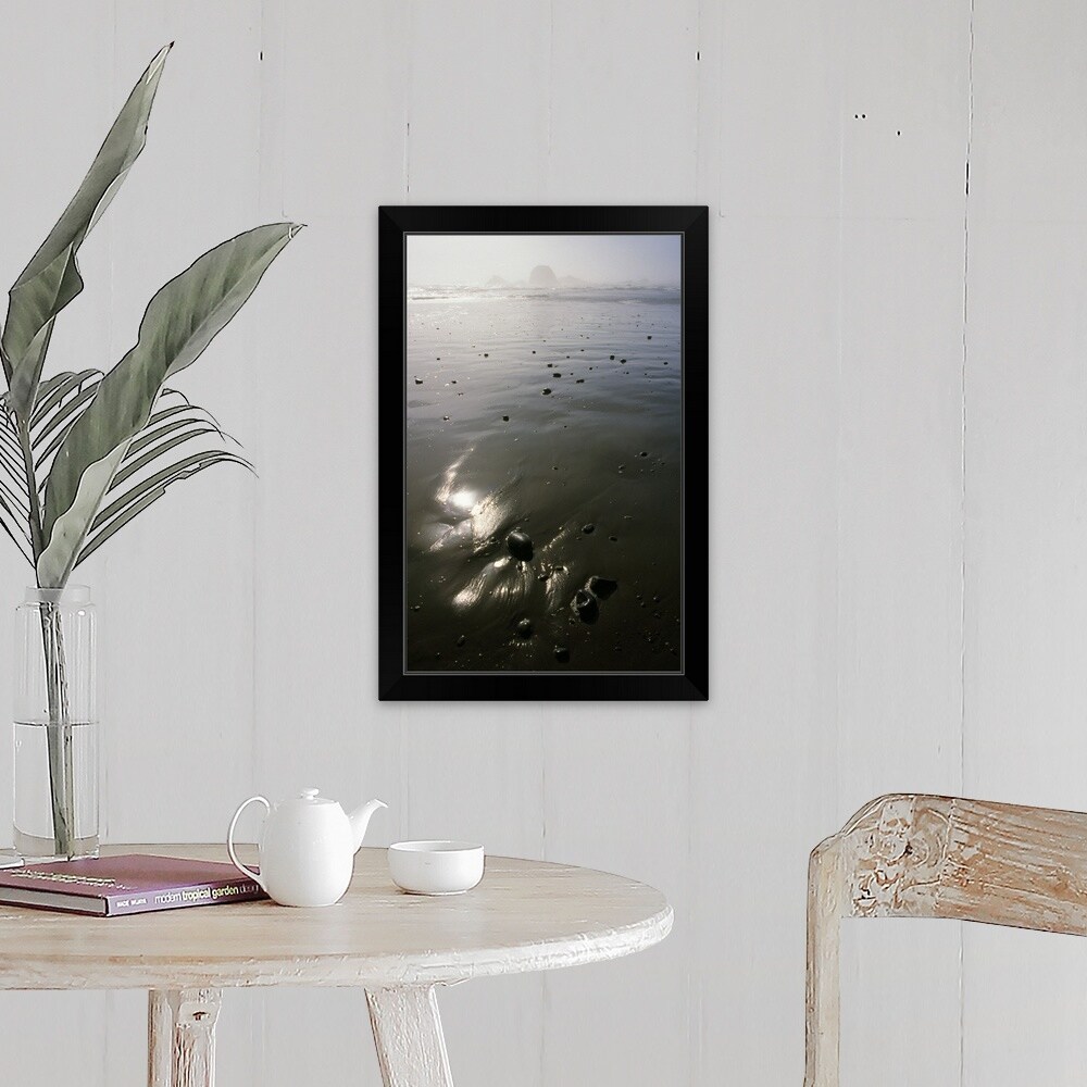 "Low Angle View of Sunlight on Beach" Black Framed Print