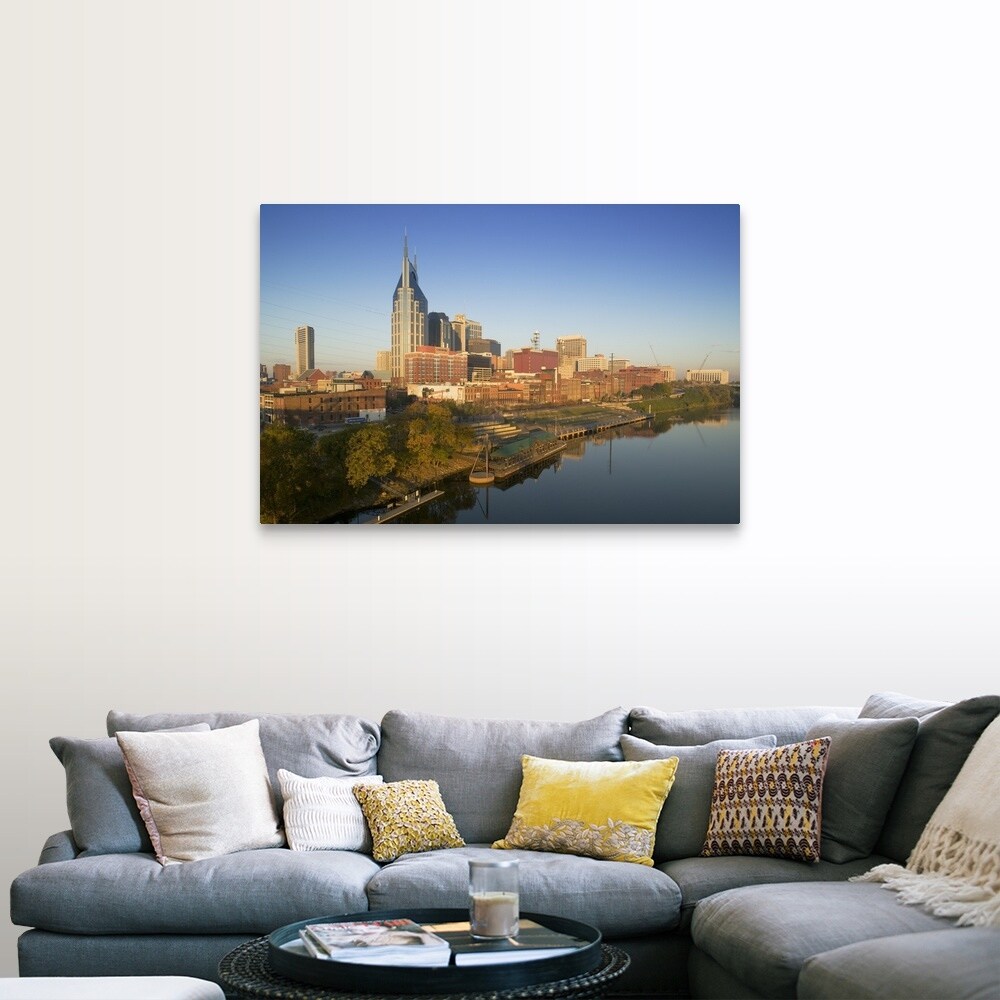 "High angle view of buildings in a city, Cumberland River, Nashville, Tennessee" Canvas Wall Art
