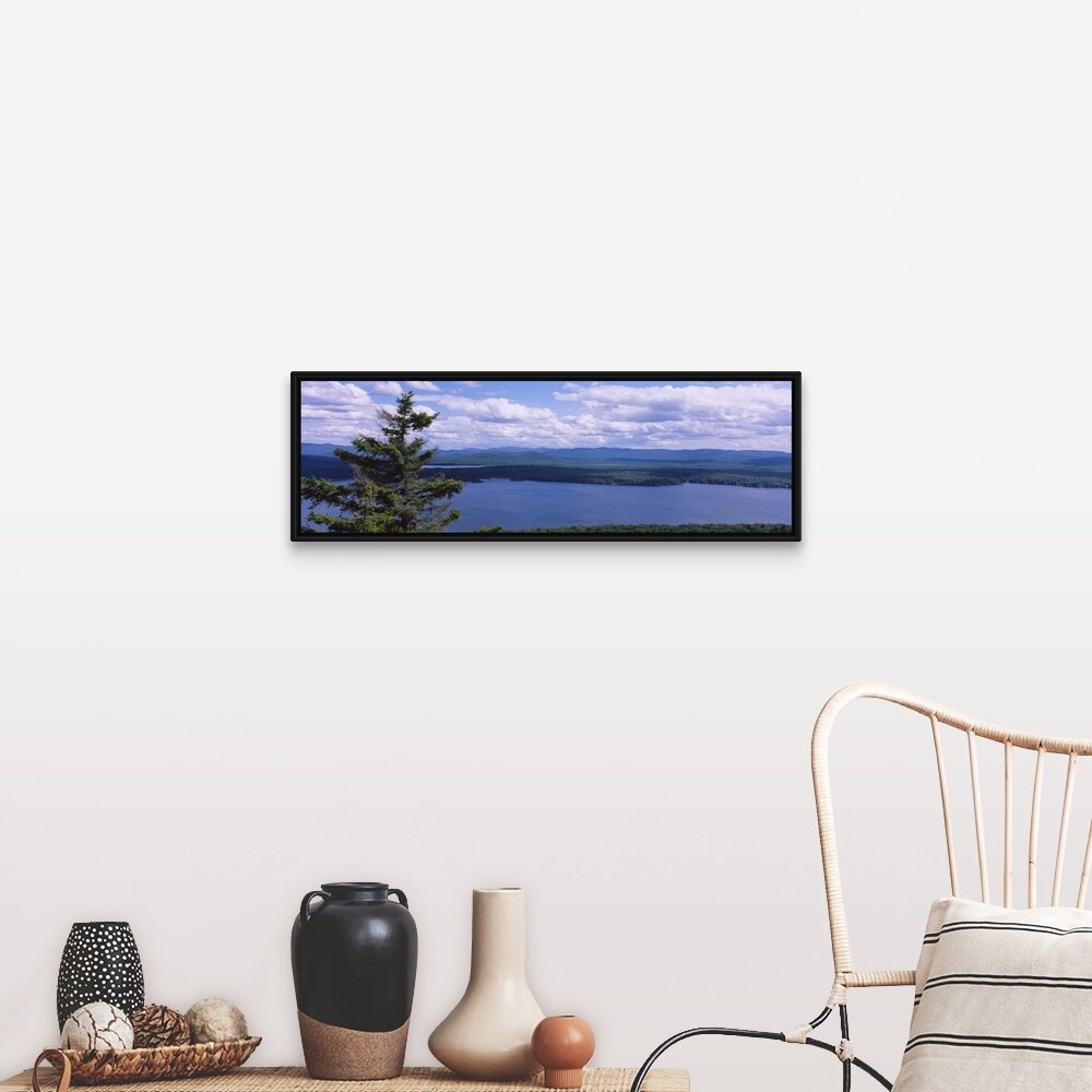"High angle view of a lake, Piseco Lake, Adirondack Mountains, New York State" Black Float Frame Canvas Art