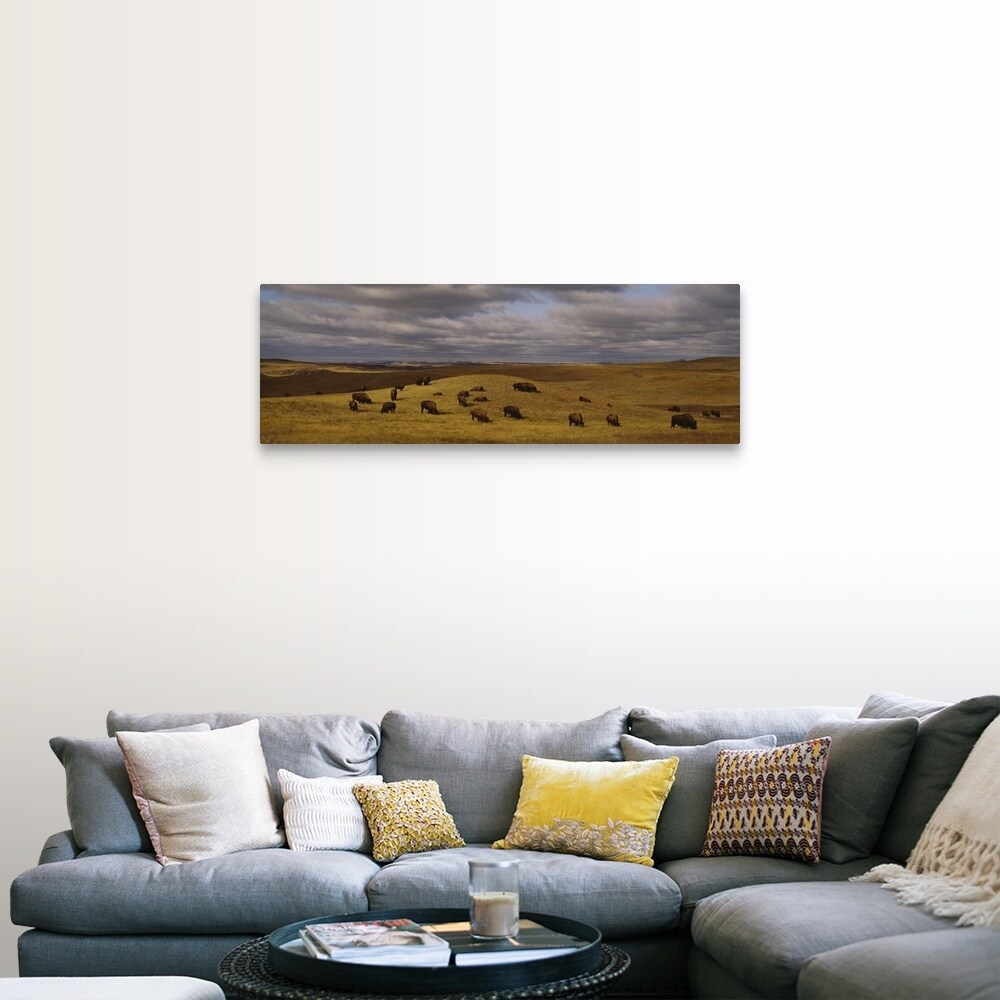 "High angle view of buffaloes grazing on a landscape, North Dakota" Canvas Wall Art