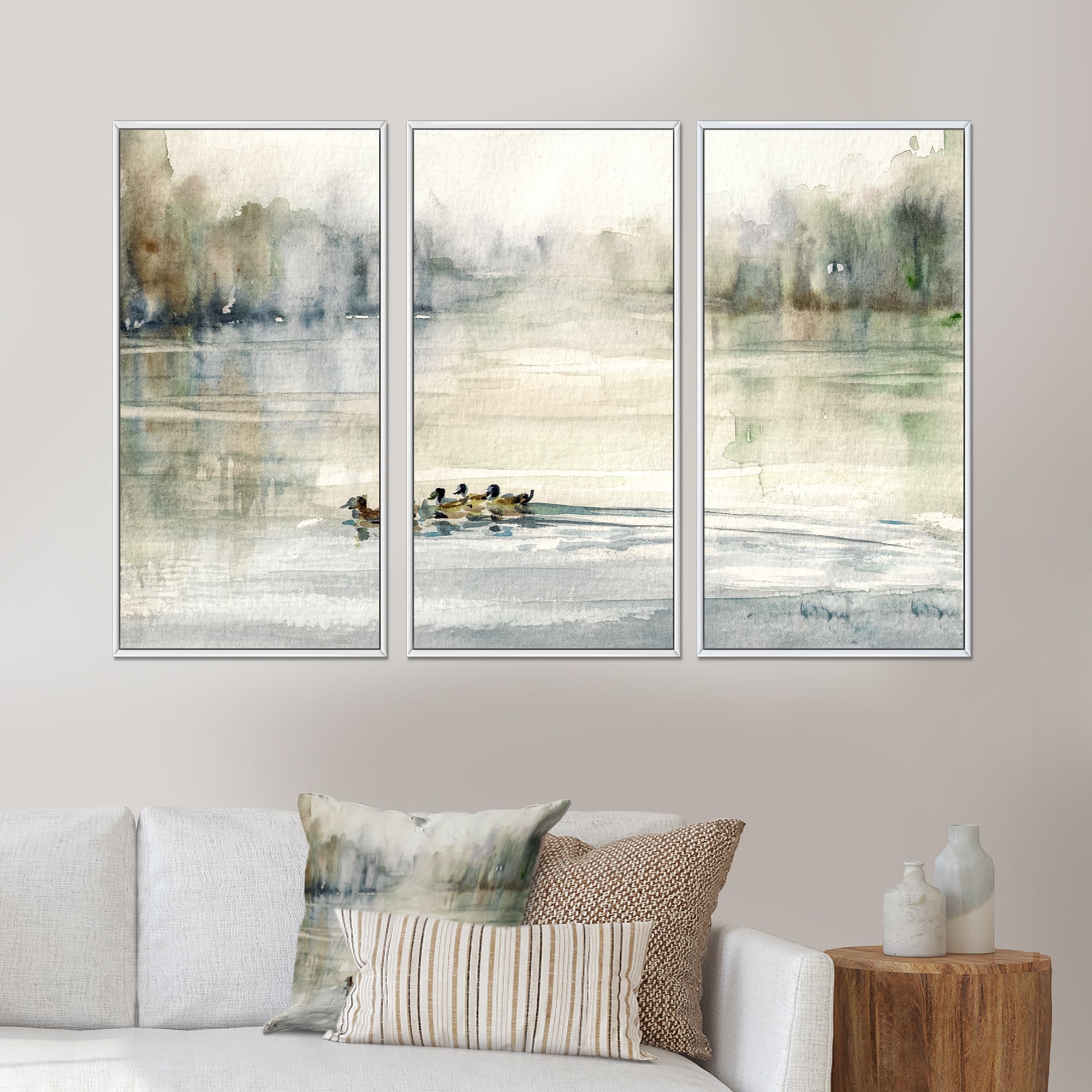 Designart "Ducks in Pond" Animal Framed Wall Art Set of 3 - 4 Colors of Frames