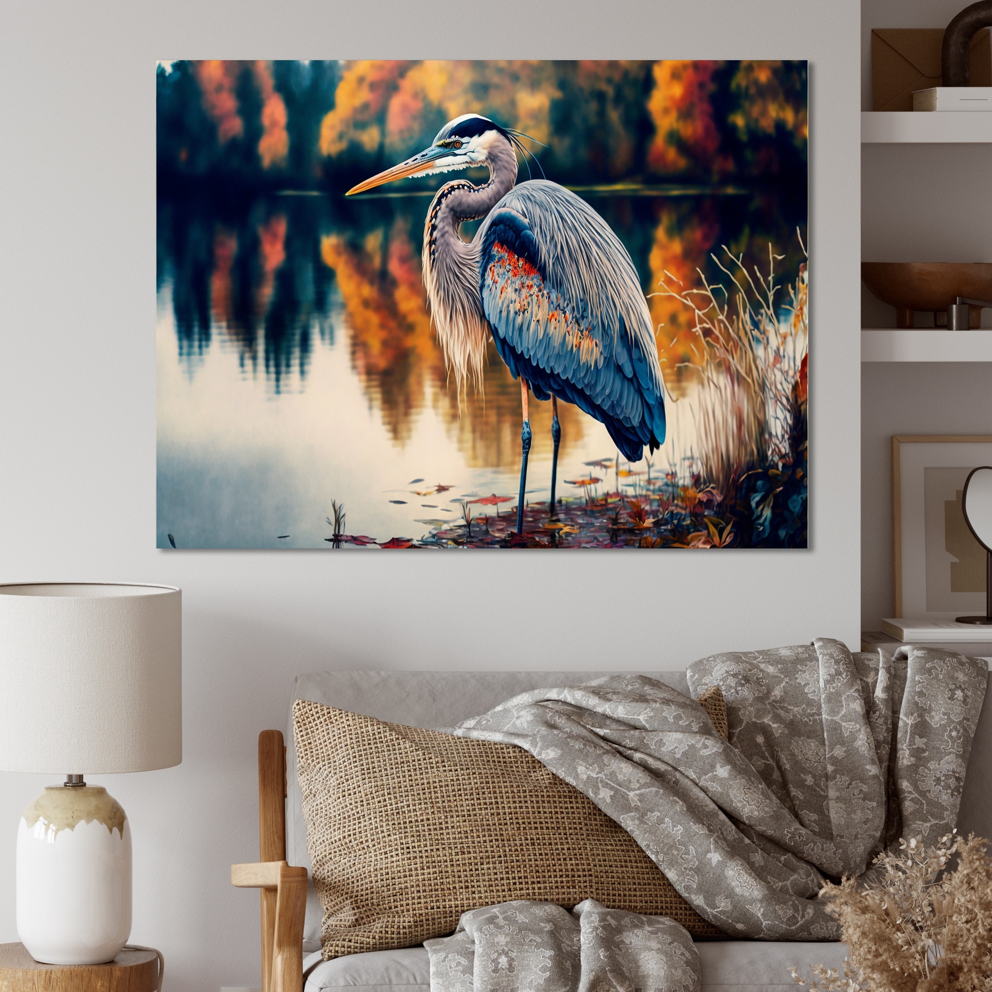 Designart 'Vibrant Heron in A Lake Floral Art III' Animals Heron Metal Wall Art