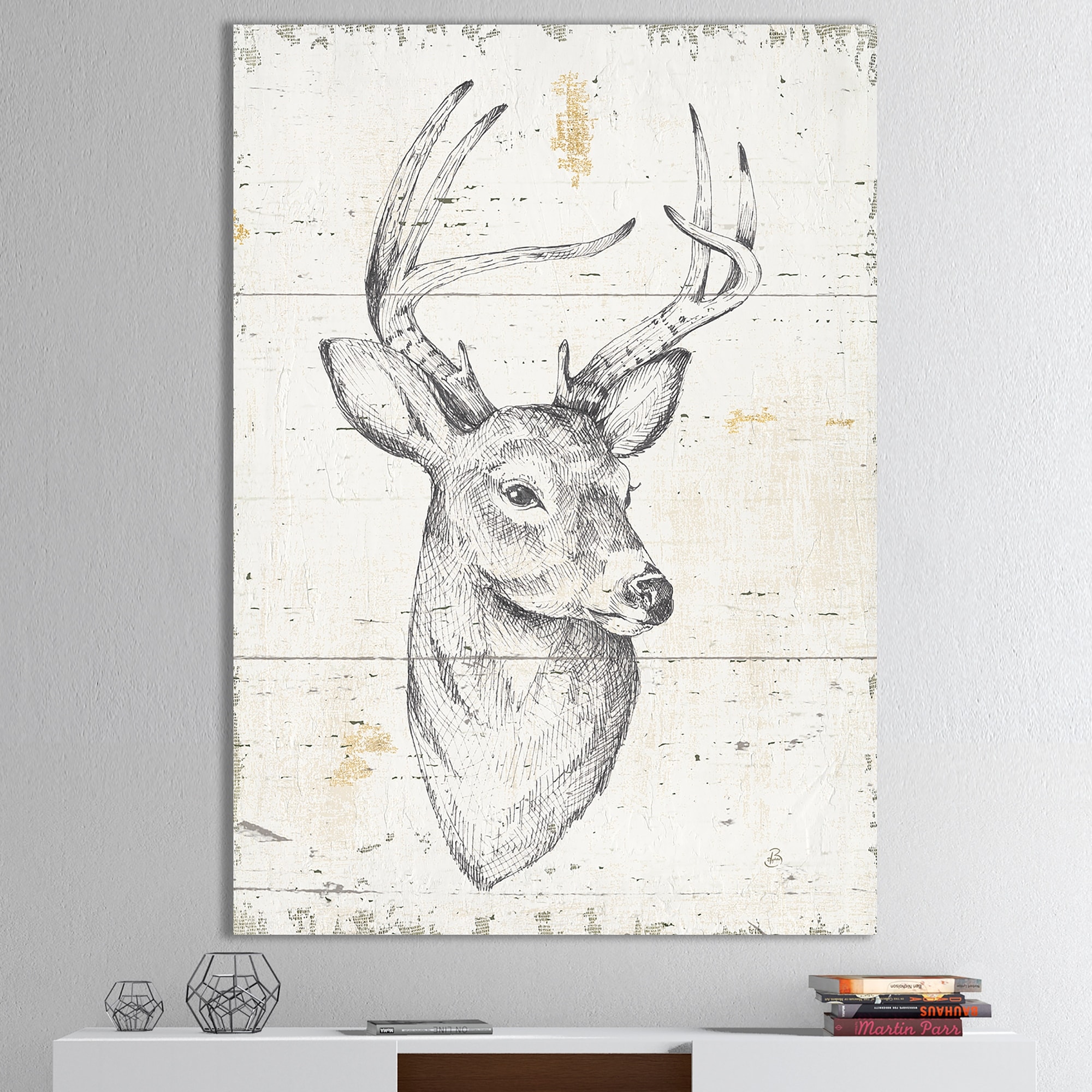 Designart "Deer Wild and Beautiful II" Wildlife Animal Canvas Art - Grey