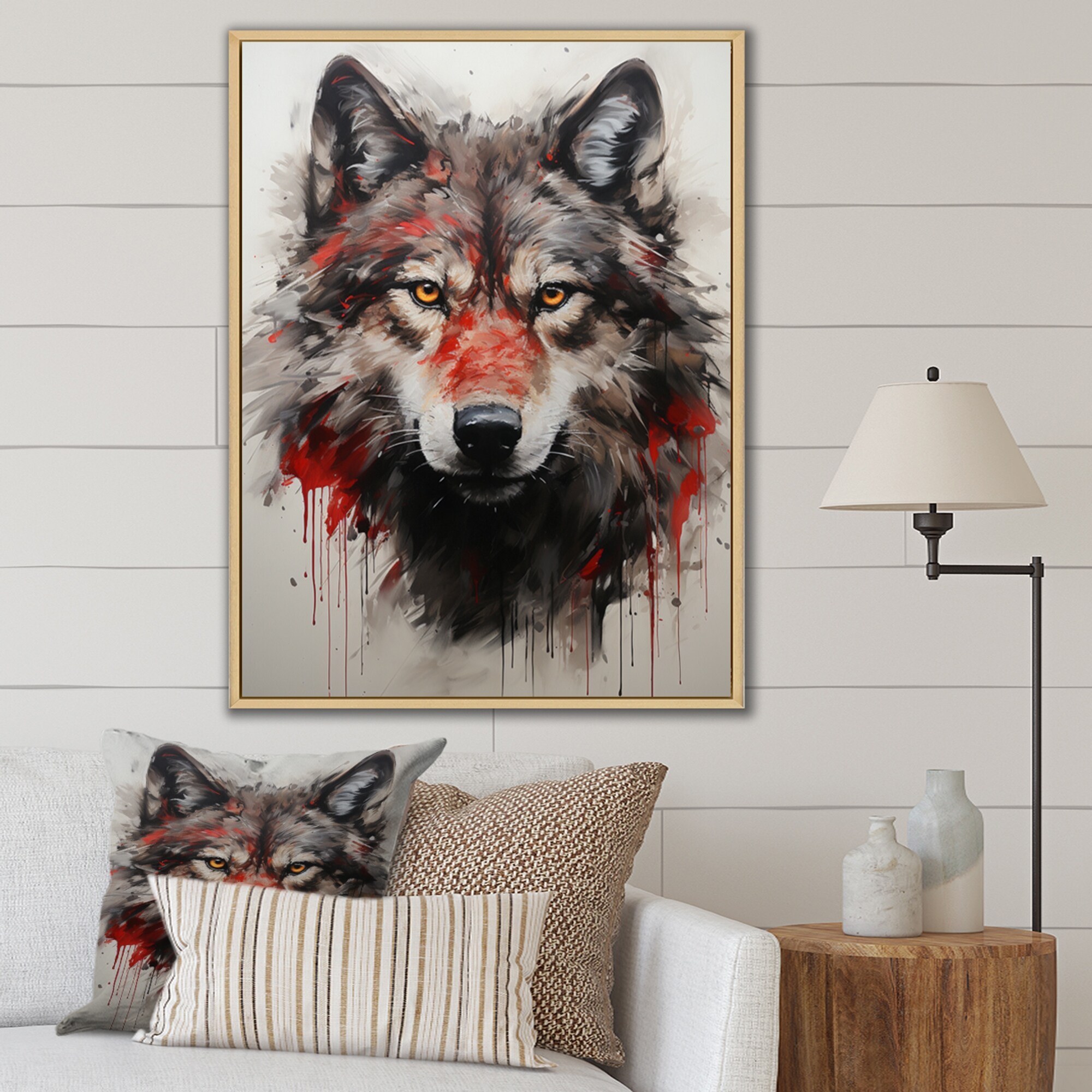 Designart "Crimson Wolf Bold II" Animals Wolf Framed Canvas Print