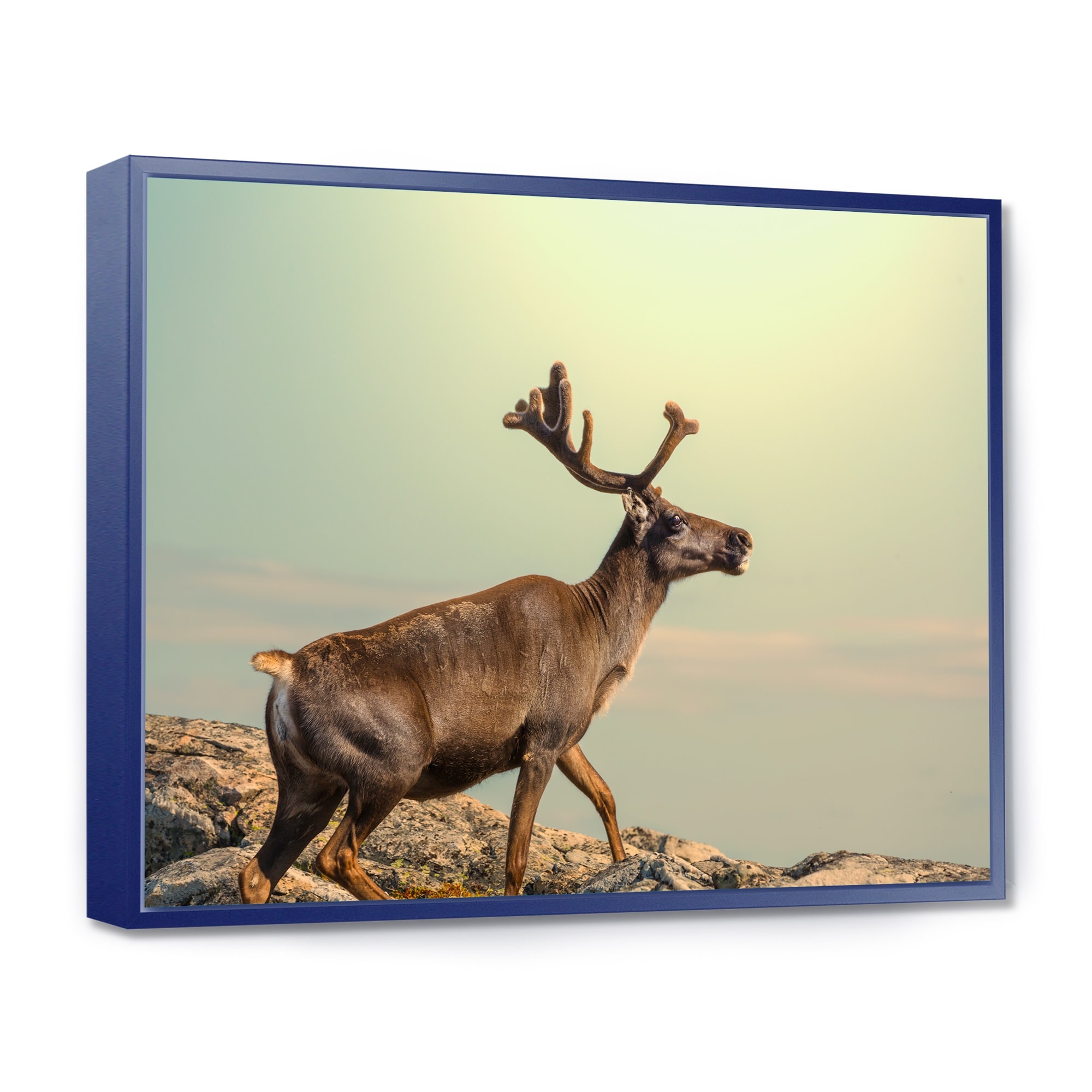 Designart "Reindeer on Top of the Mountain" Animal Framed Canvas Art Print
