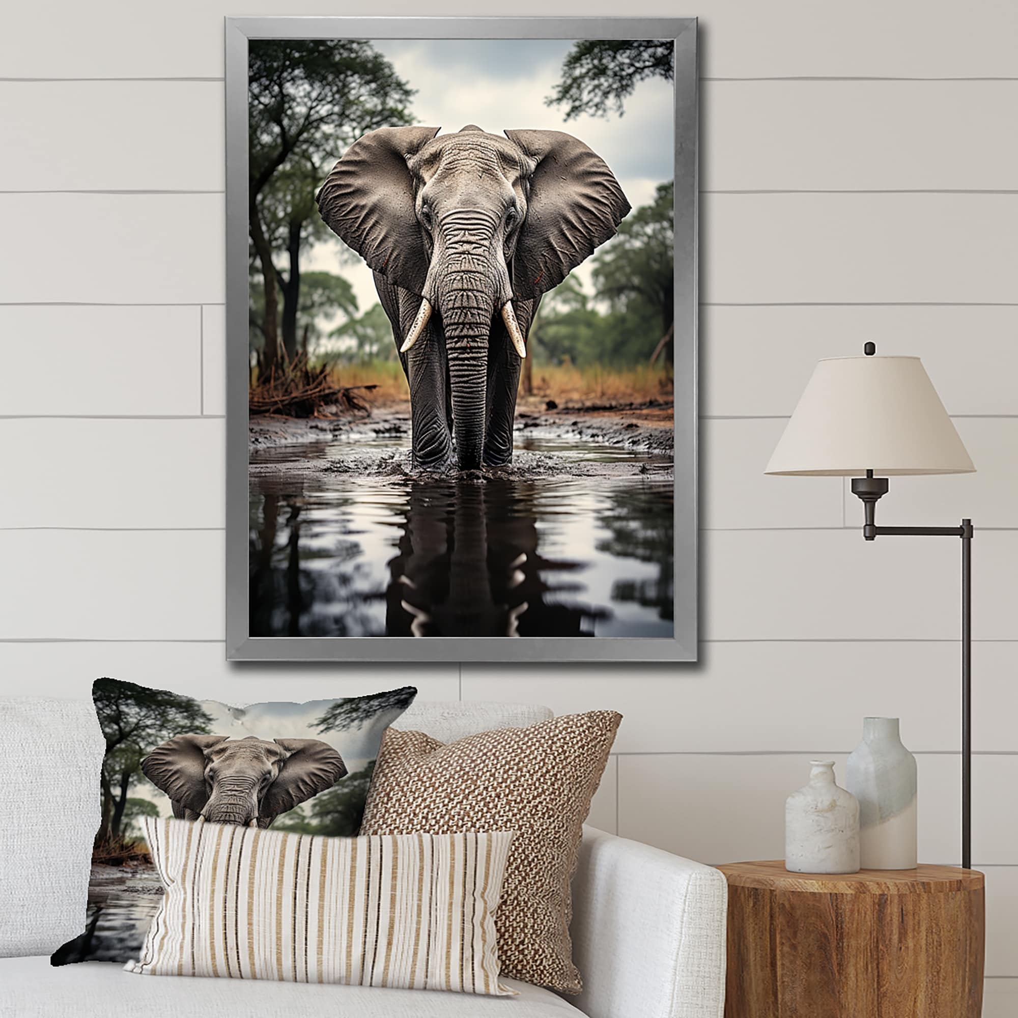 Designart "Elephant Majestic Reflections" Animals Elephant Framed Wall Art Prints