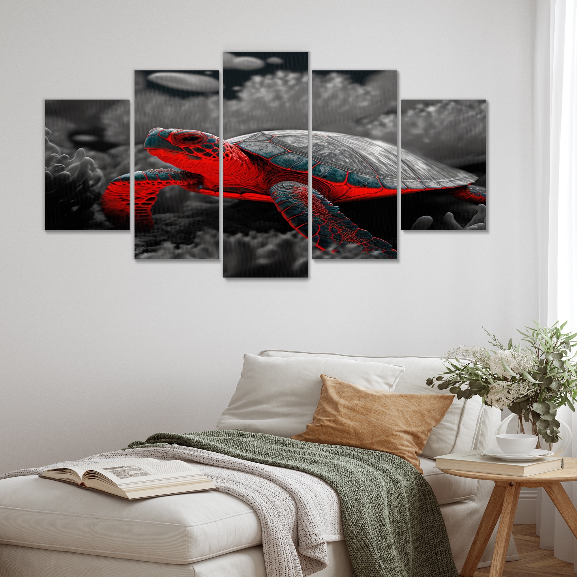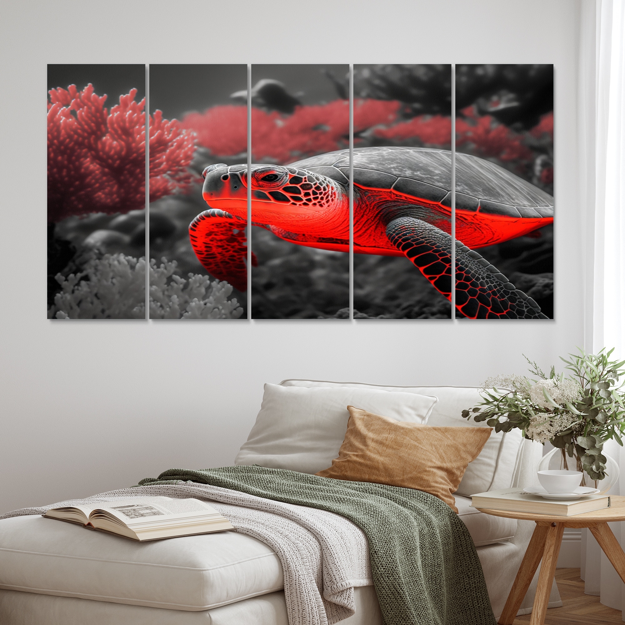 Designart "Black And Red Deep Sea Turtle V" Animals Turtle Multipanel Wall Art Living Room