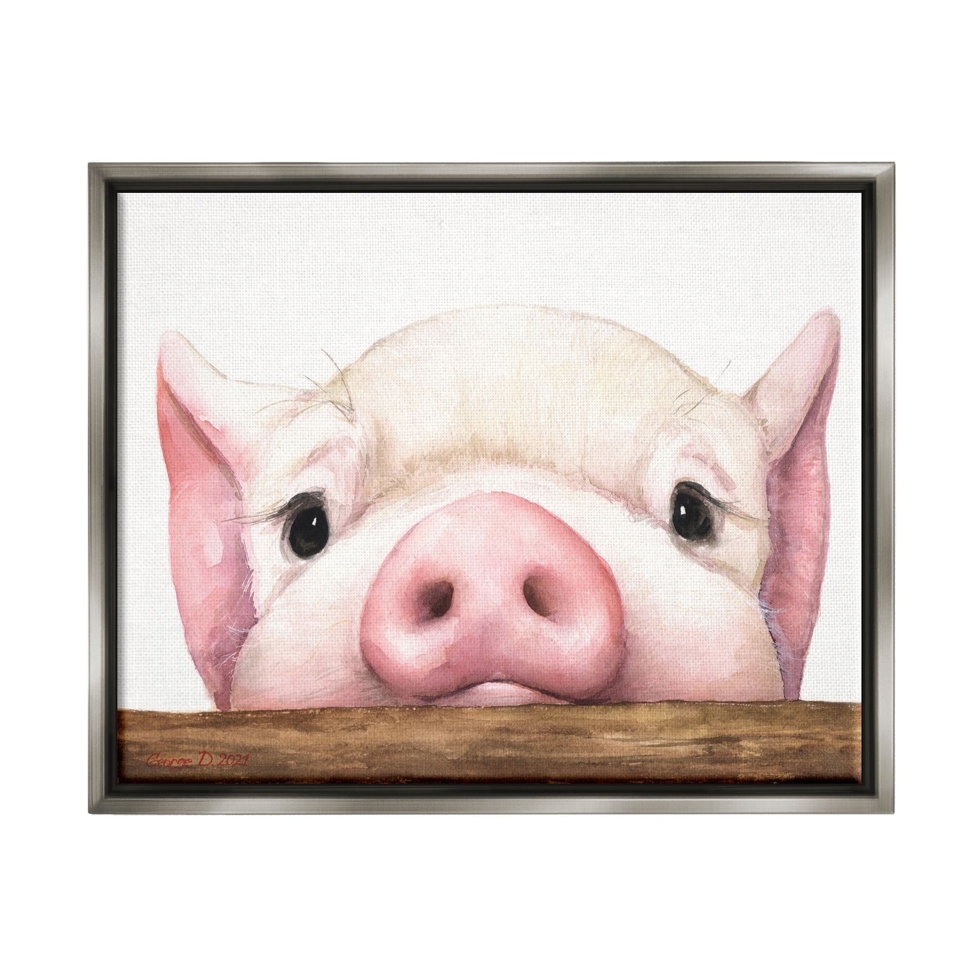 Stupell Industries Sweet Pink Pig Resting Snout Farm Animal Illustration Floater Frame, Design by George Dyachenko