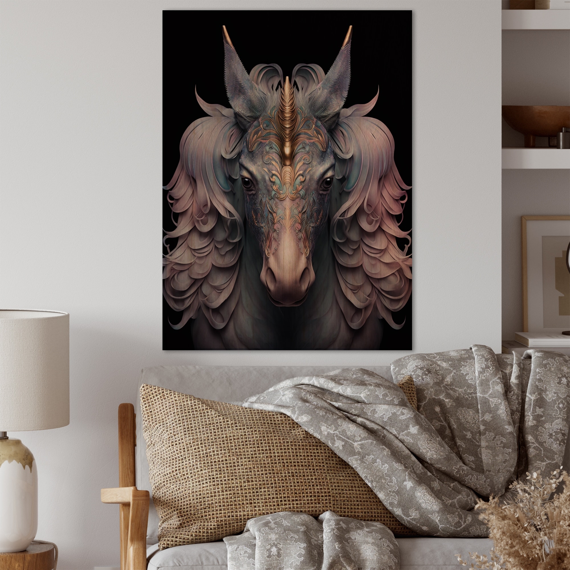 Designart 'Beautiful Portrait of a Unicorn III' Animals Horse Wood Wall Art - Natural Pine Wood