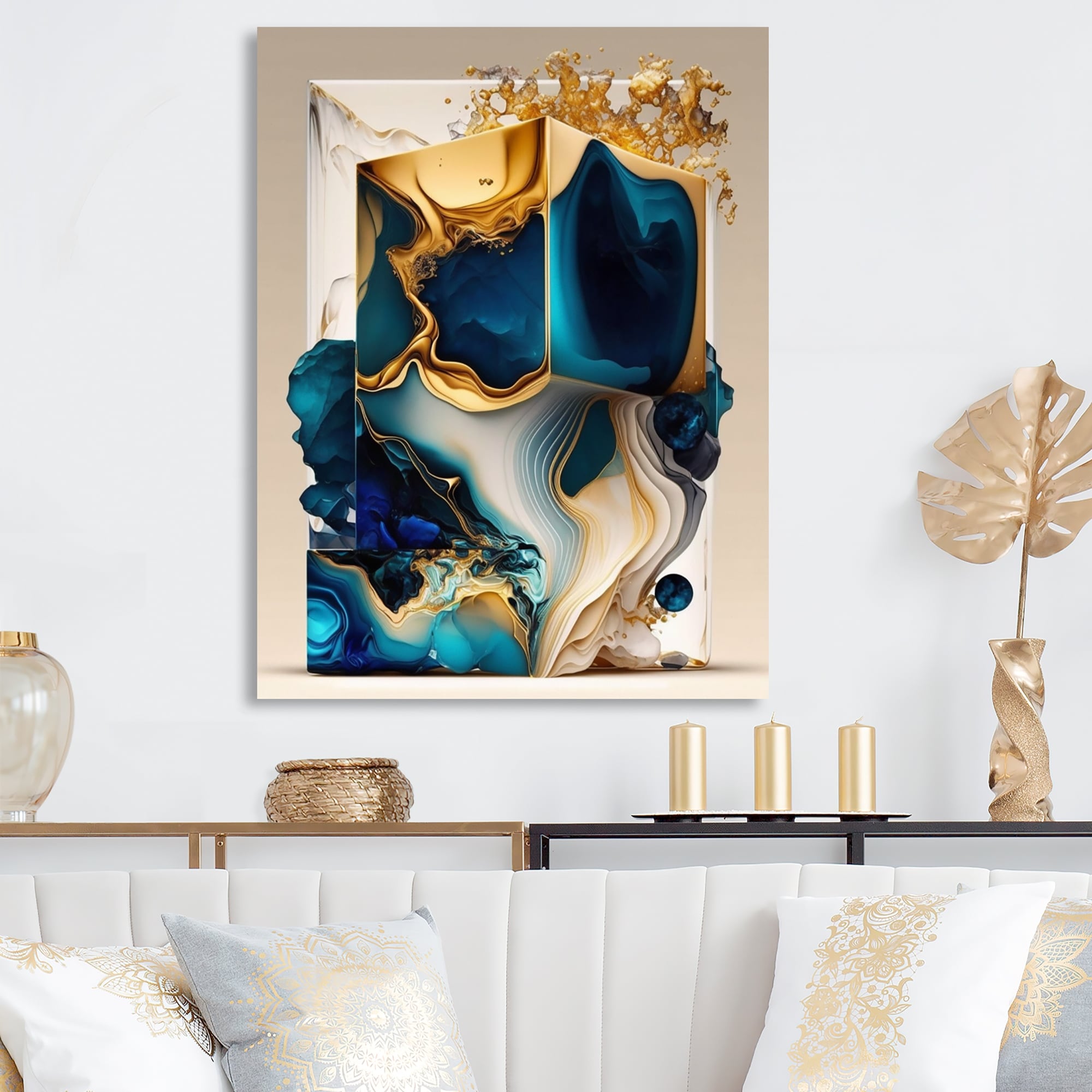 Designart 'Abstract Marble Geode Blue Shape' Animals Canvas Wall Art