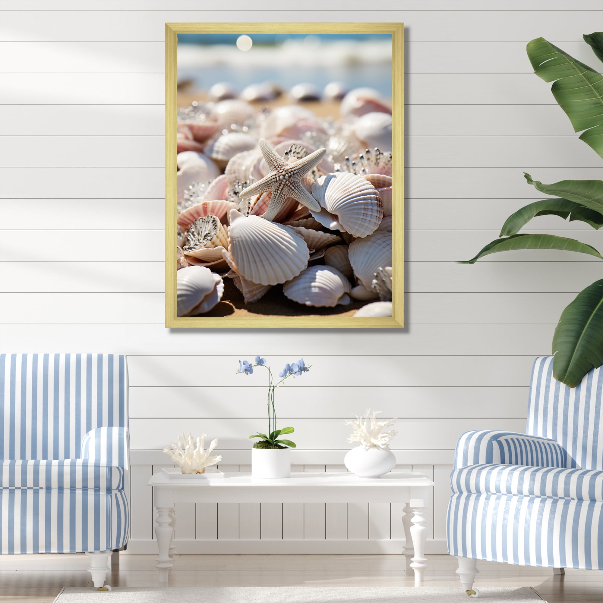 Designart "Beach Photo Seashell Collage X" Coastal Animal Framed Canvas Wall Art