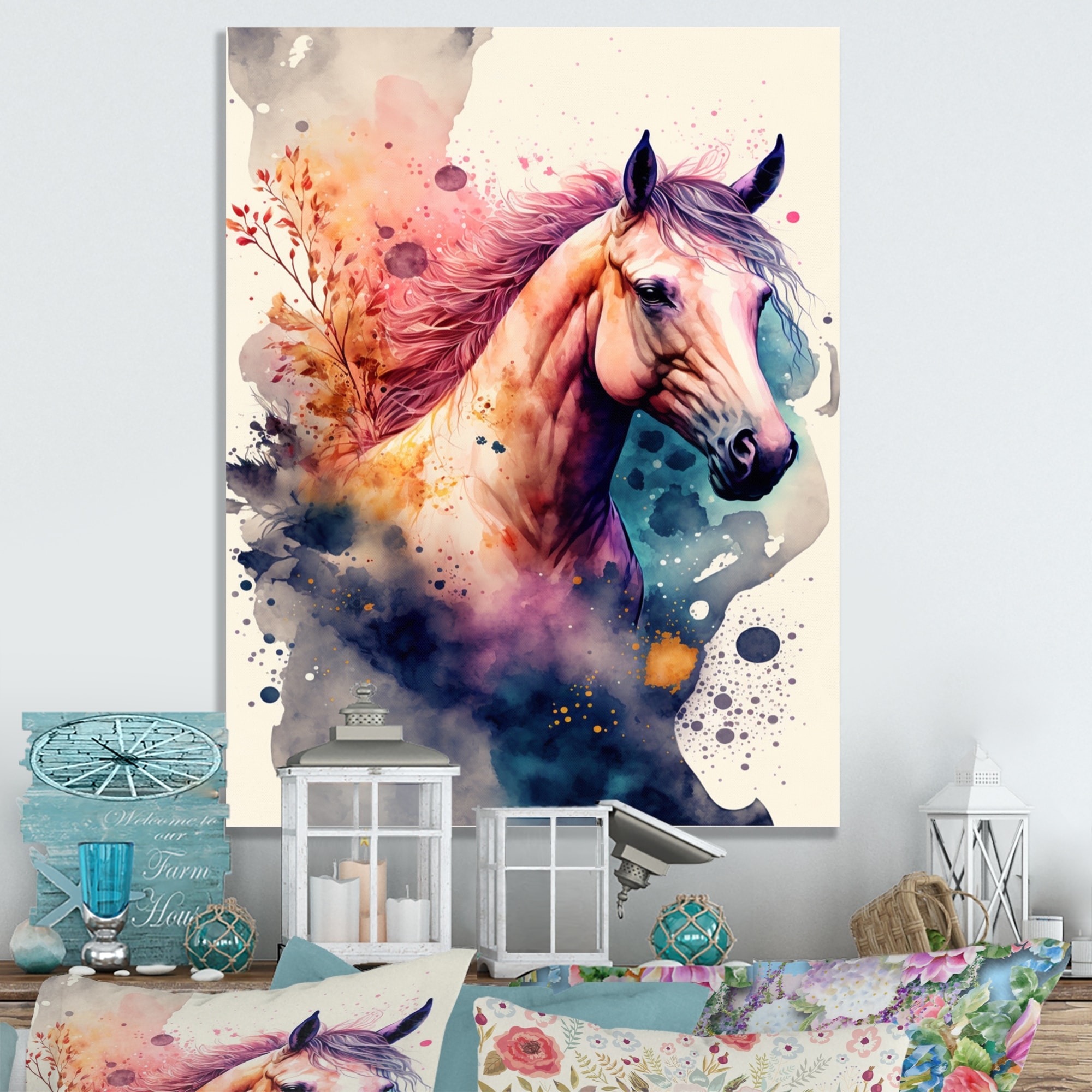 Designart 'Cute Horse Floral Art II' Animals Canvas Wall Art
