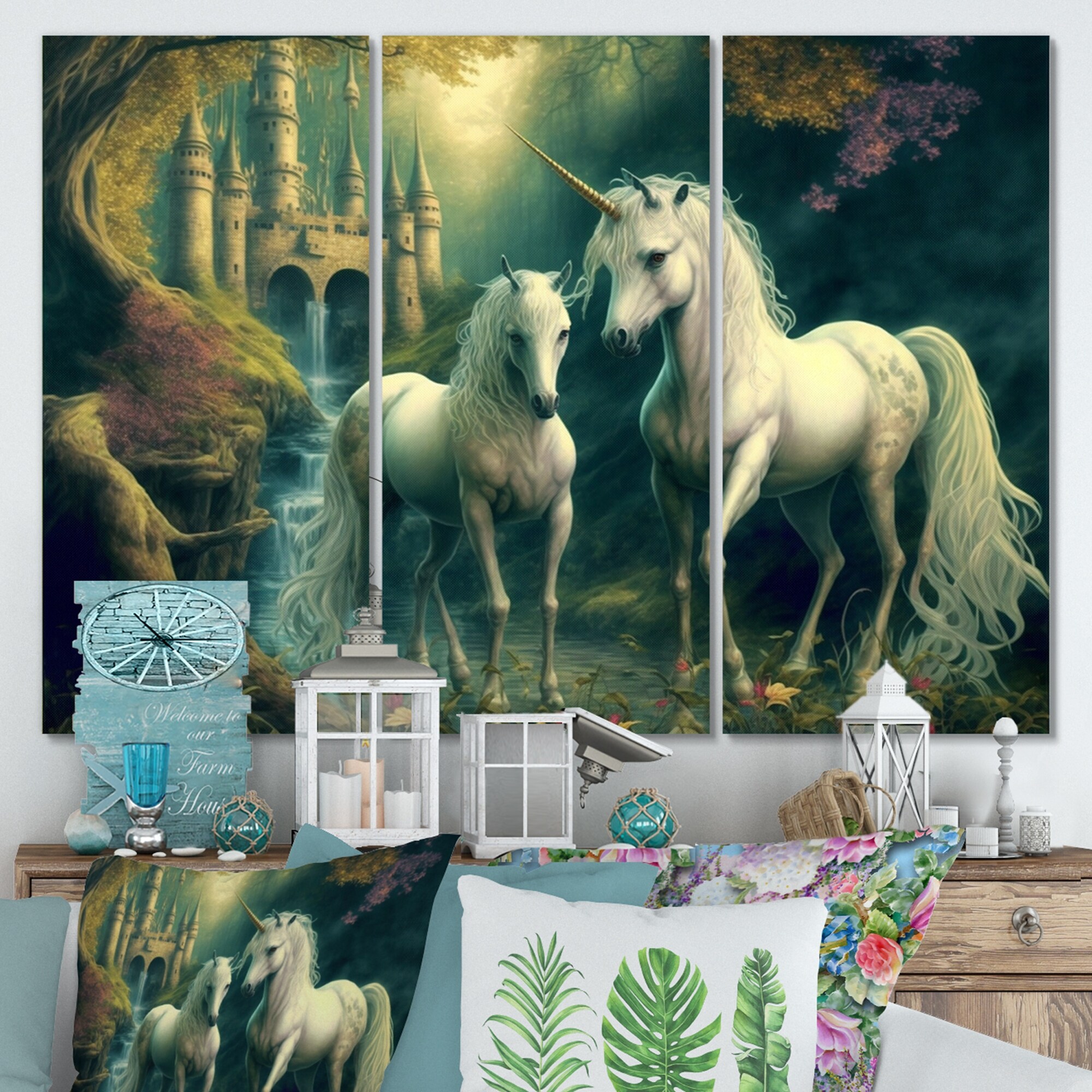 Designart "Two Gracious Unicorn in Fantasy Landscape" Animals Horse Canvas Wall Art Print