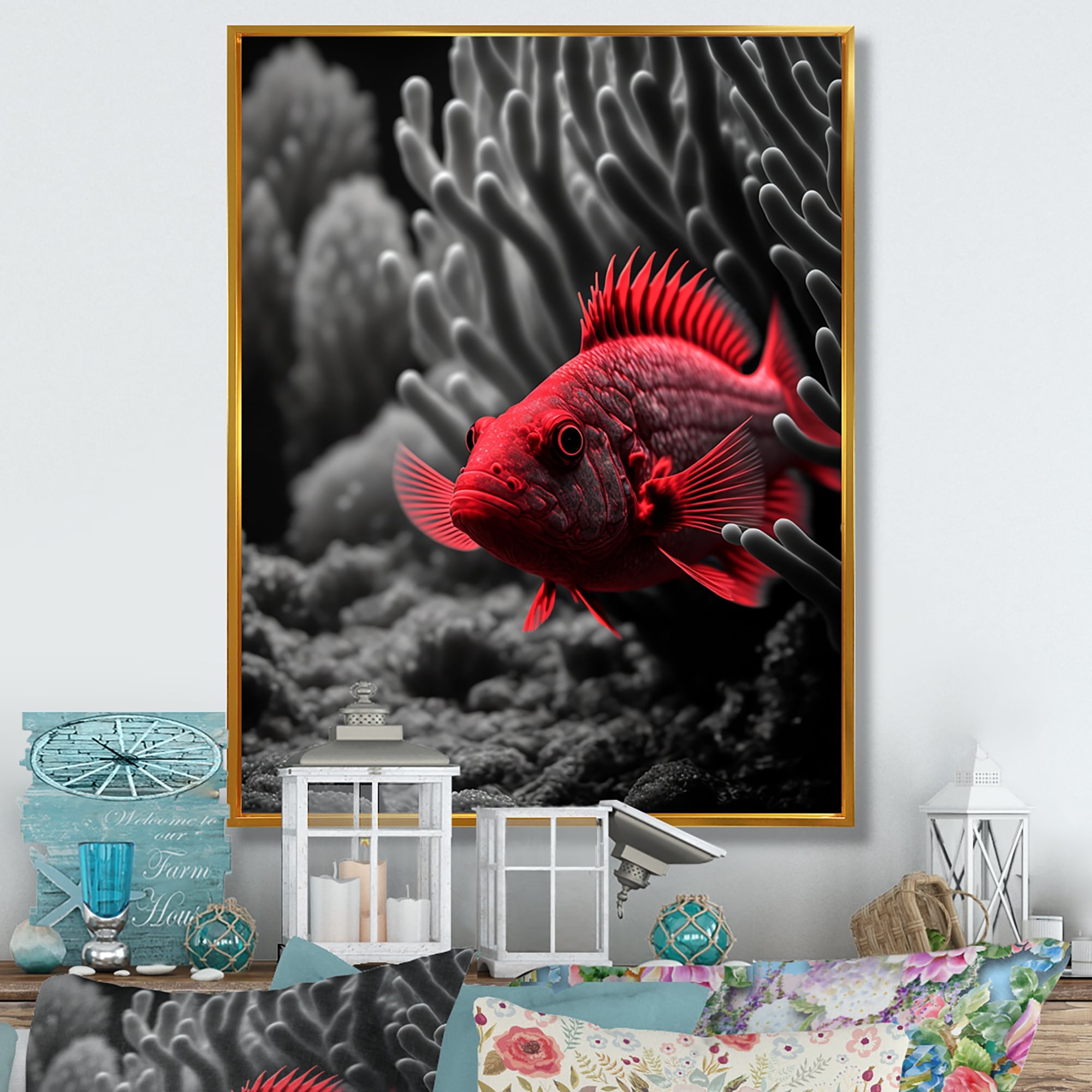 Designart "Black And Red Tropical Fish IX" Animal Fish Framed Canvas Wall Art Print