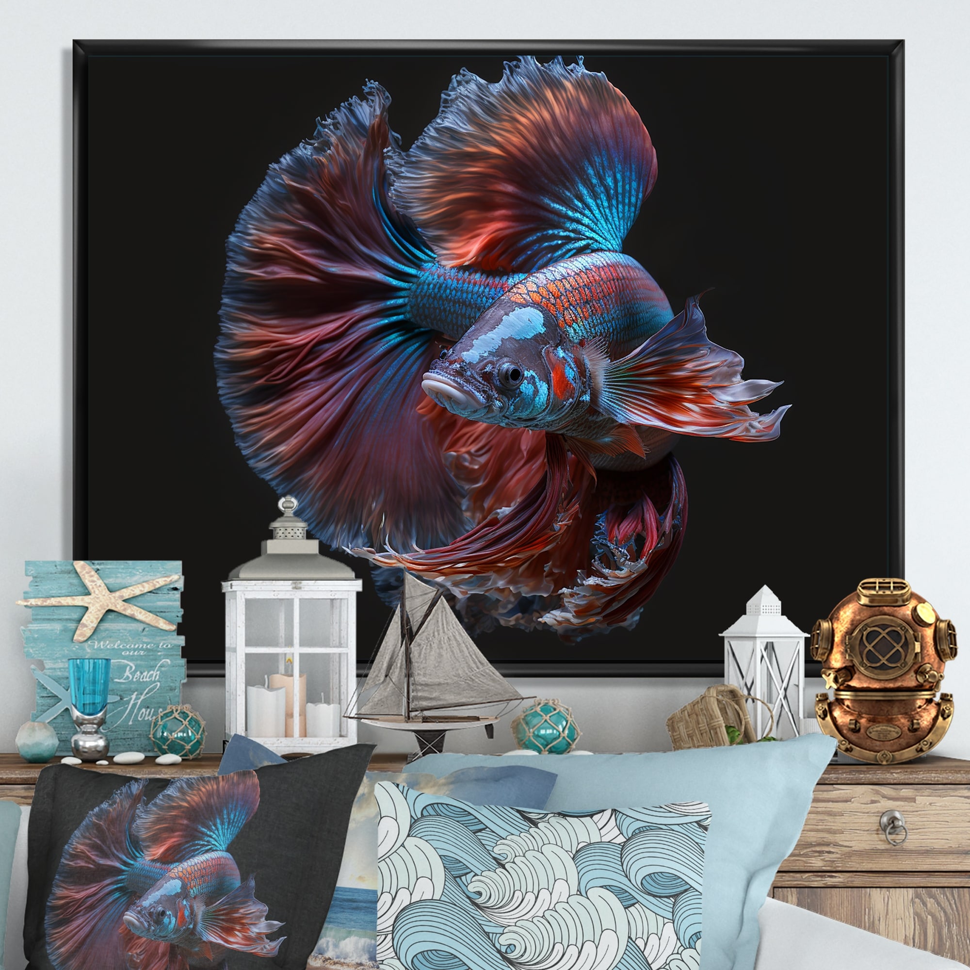 Designart "Magnificent Bettafish in Shades of Blue And Purple IV" Animal Fish Framed Canvas Wall Art Print