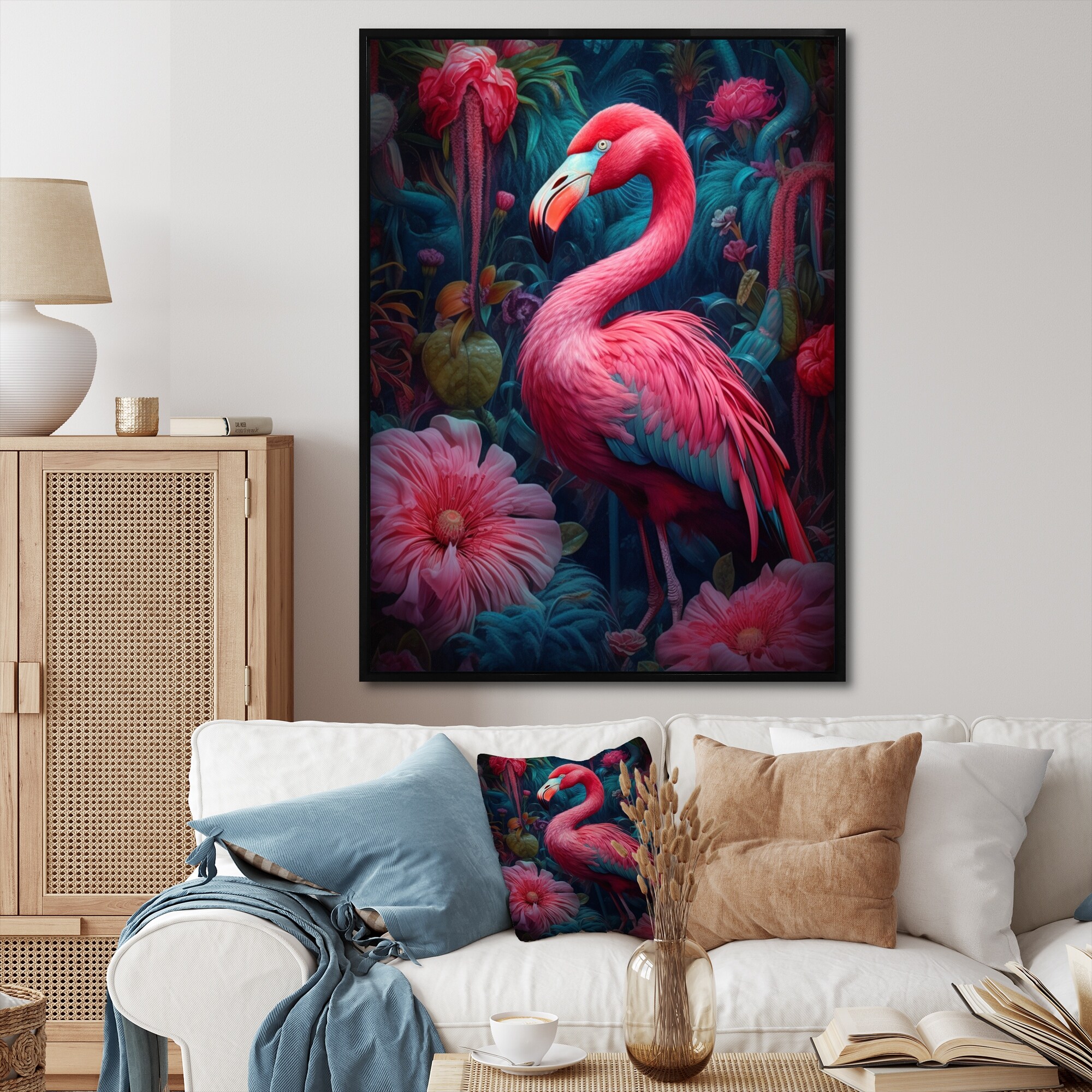 Designart "Tropical Flamingo Grace III" Animals Flamingo Framed Canvas Art Print