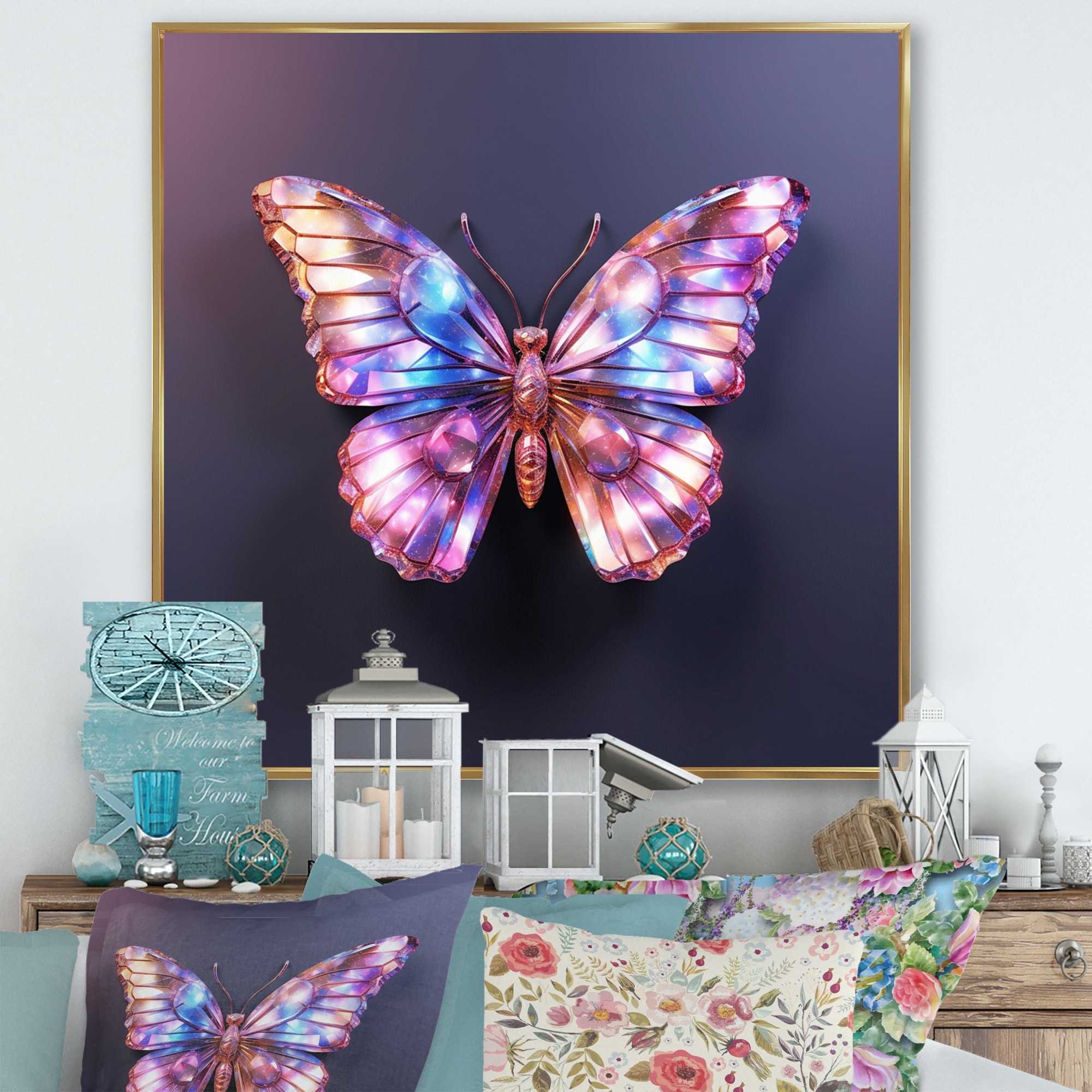 Designart "Purple And Pink Butterfly" Animals Butterfly Framed Canvas Art Print