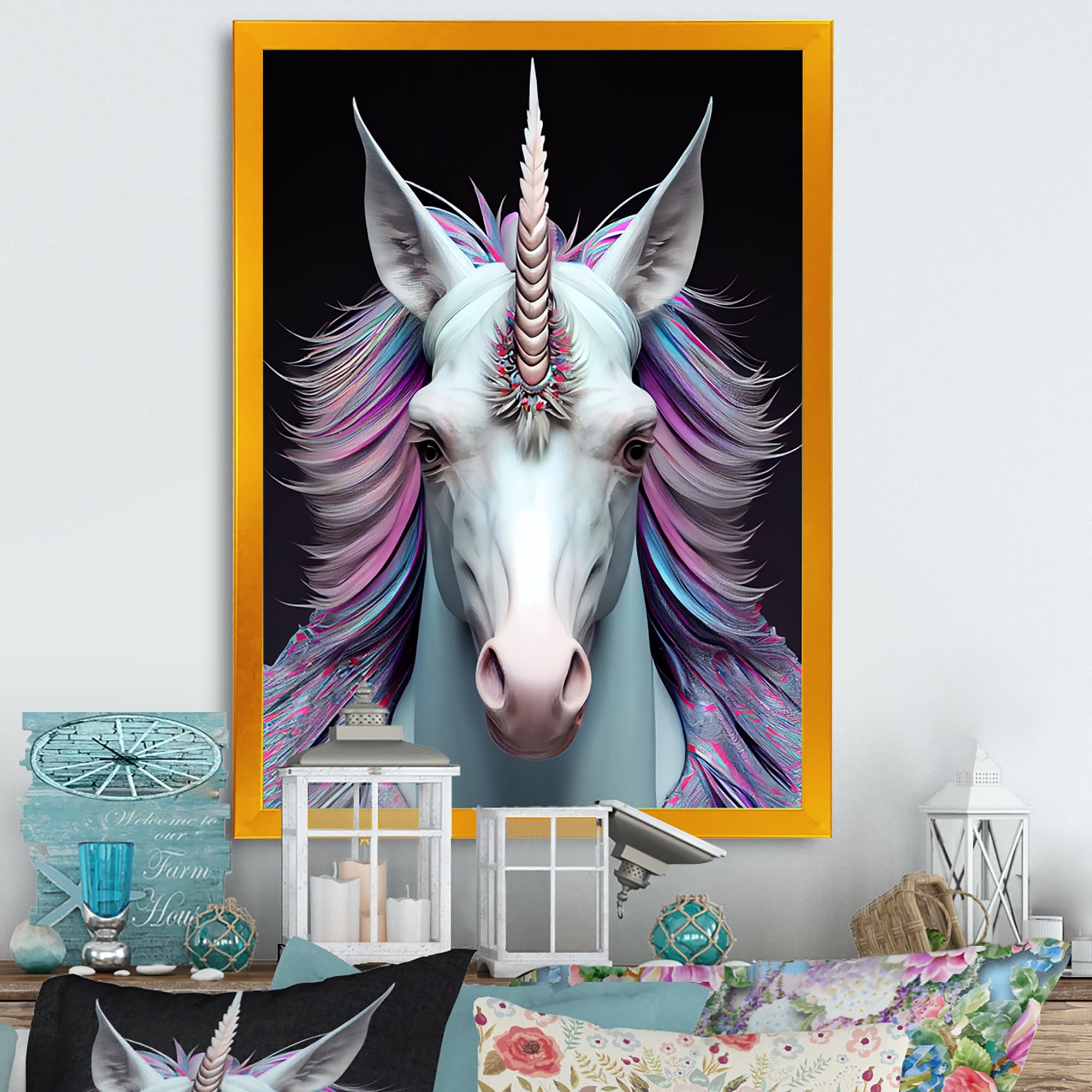 Designart "Beautiful Portrait of a Unicorn II" Animals Horse Framed Art Print