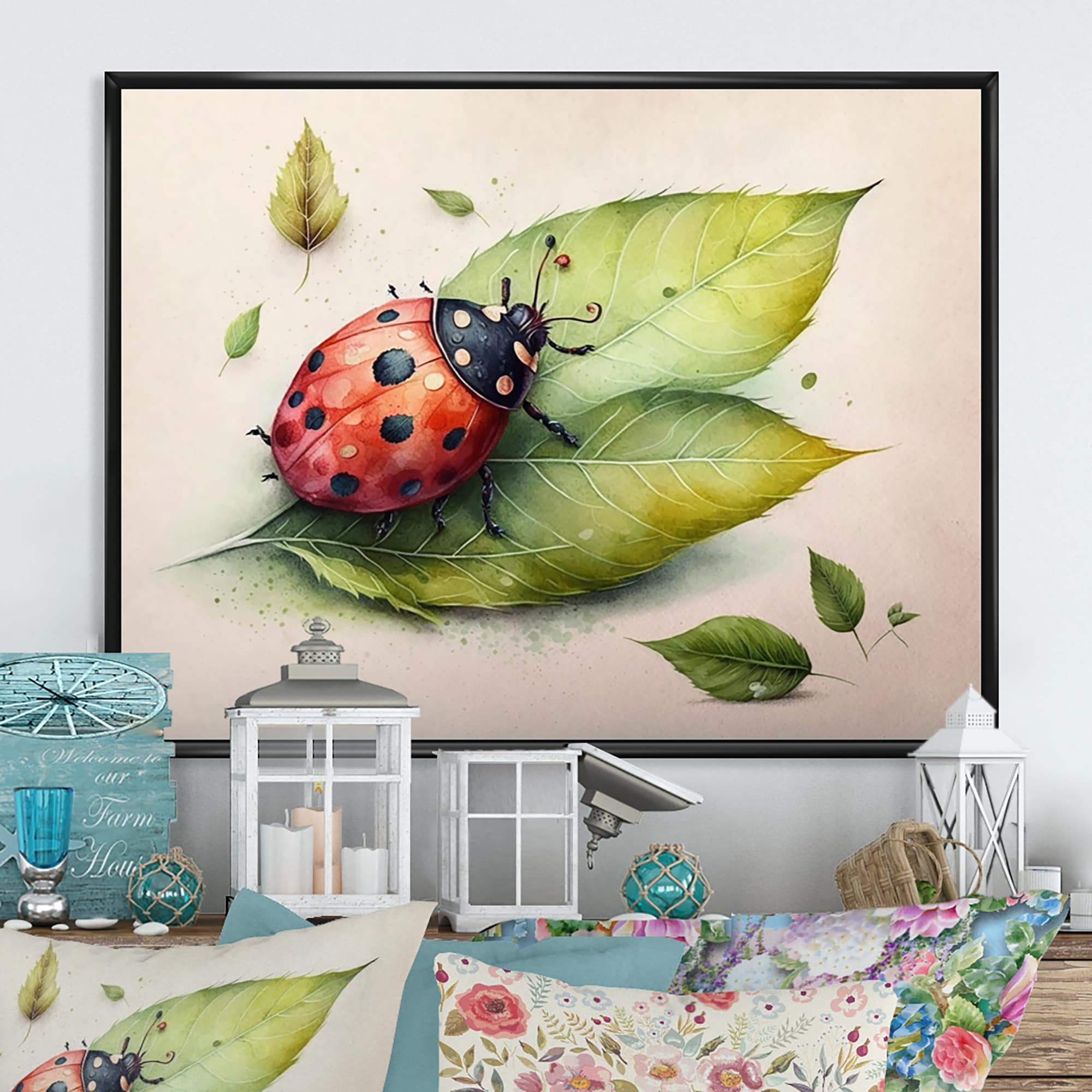 Designart "Ladybug On A Leaf" Animals Framed Canvas Art Print