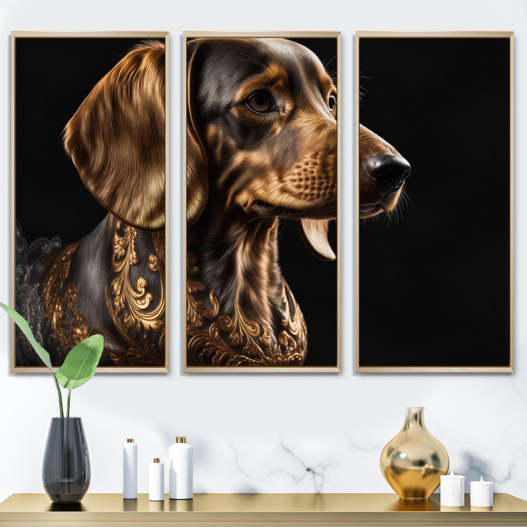 Designart "Portrait Of a Black Glam Dachshund IV" Animals Framed Canvas Wall Art Print - 3 Panels
