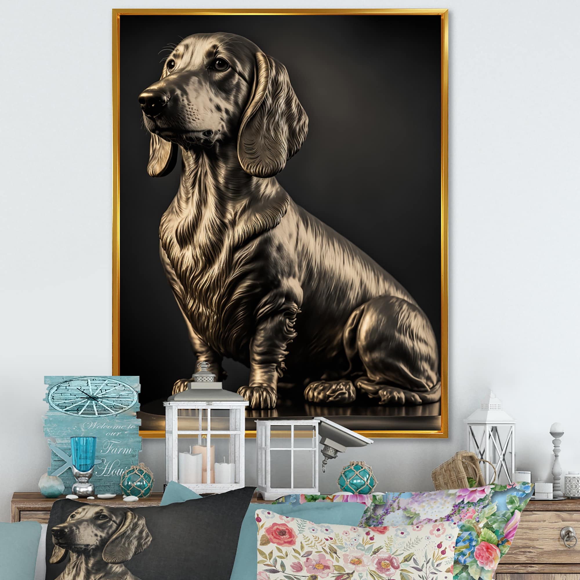 Designart "Sweet Daschund Portrait" Animals Framed Canvas Wall Art Print