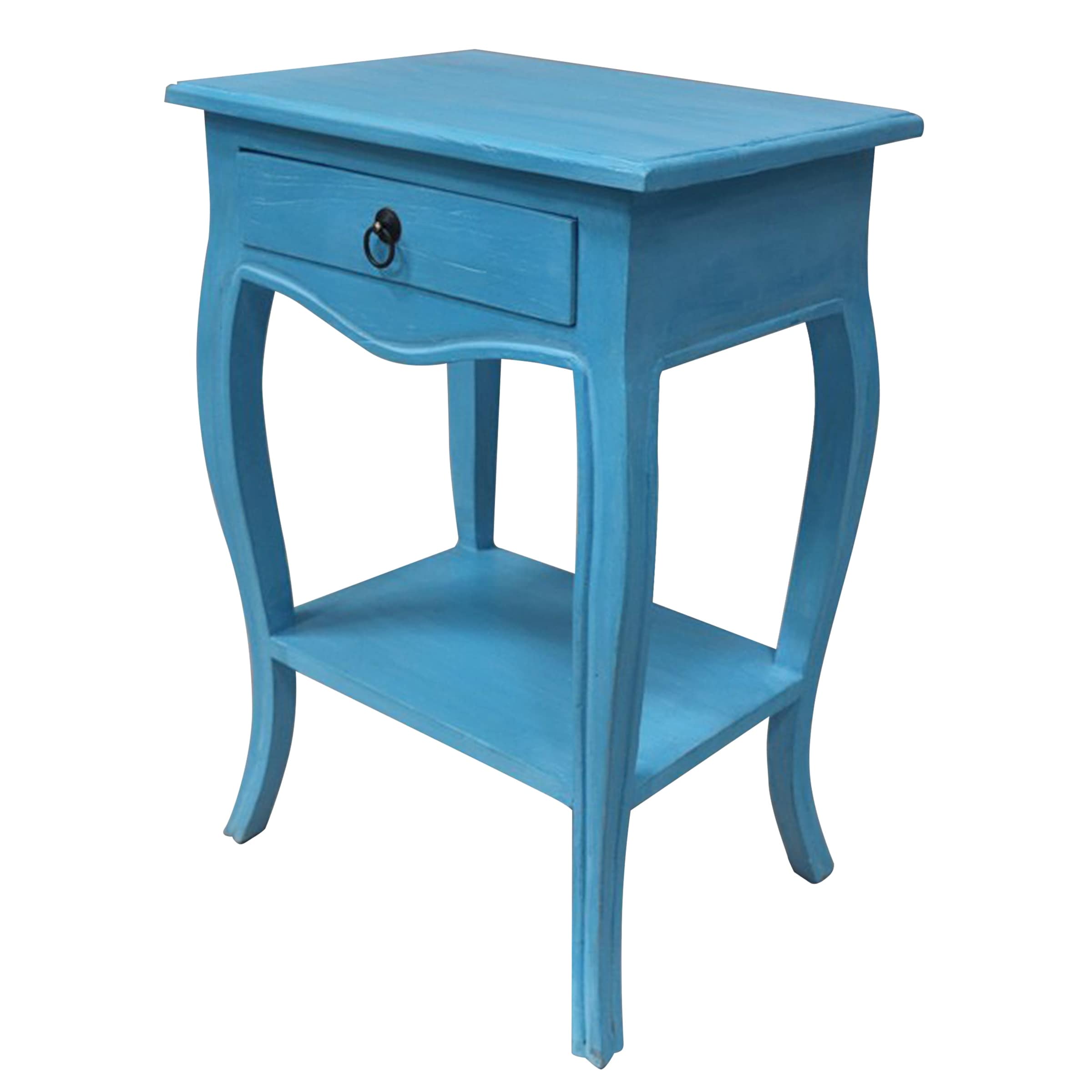 Paris - Side Table With A Single Drawer And Shelf - Solid Mindy Wood - Natural Wood Finish - Antique Blue Finish