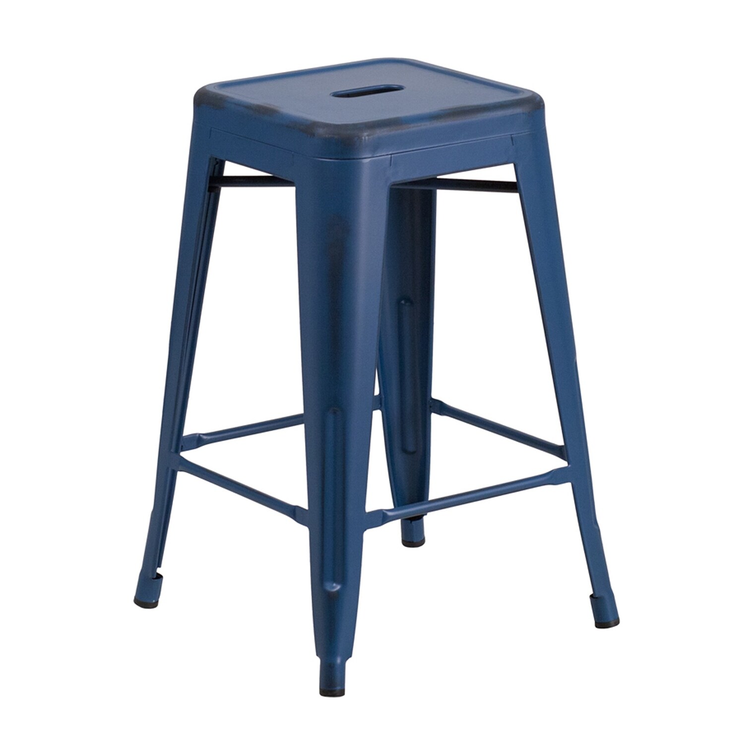 Offex Commercial Grade 24" High Antique Blue Metal CounterHeight Stool