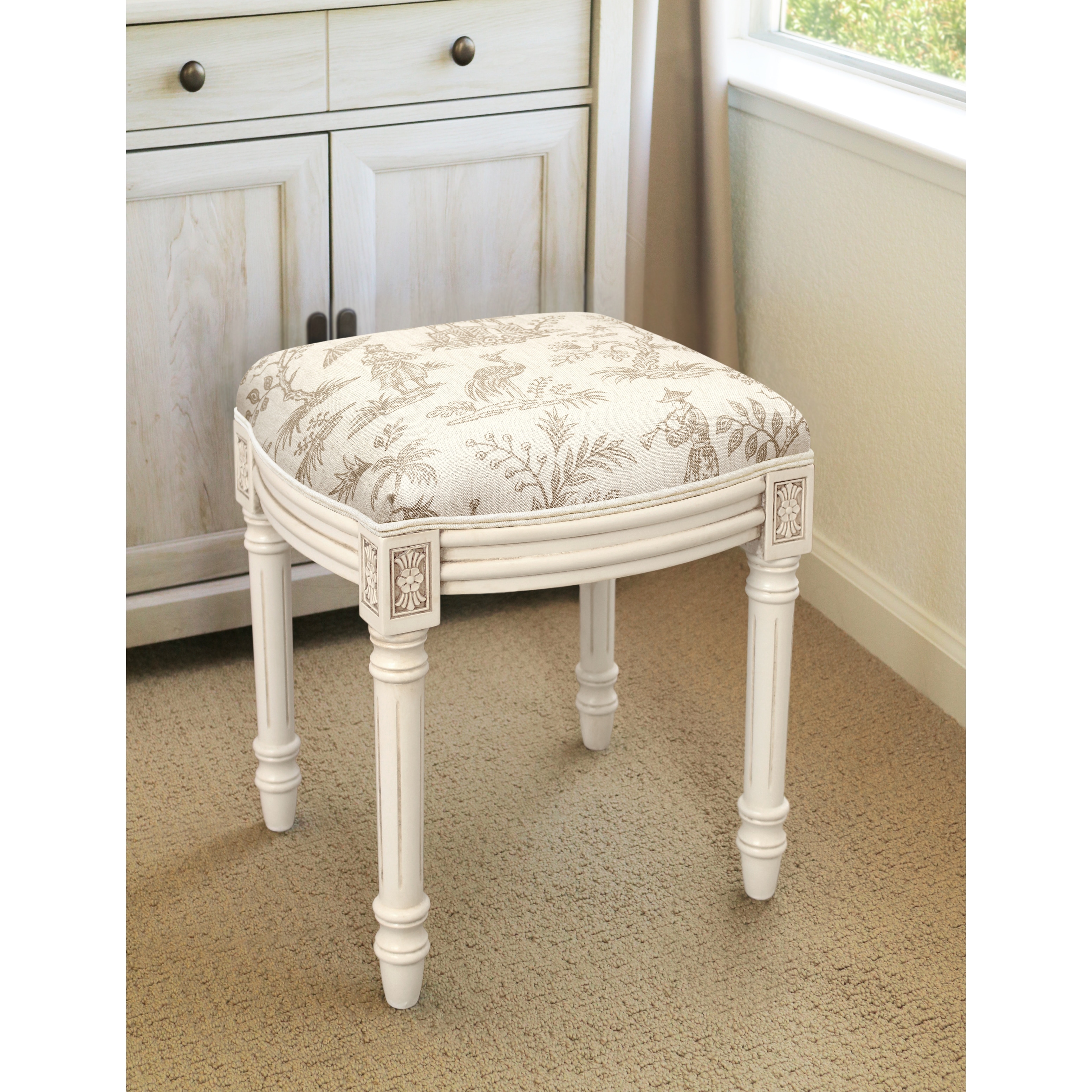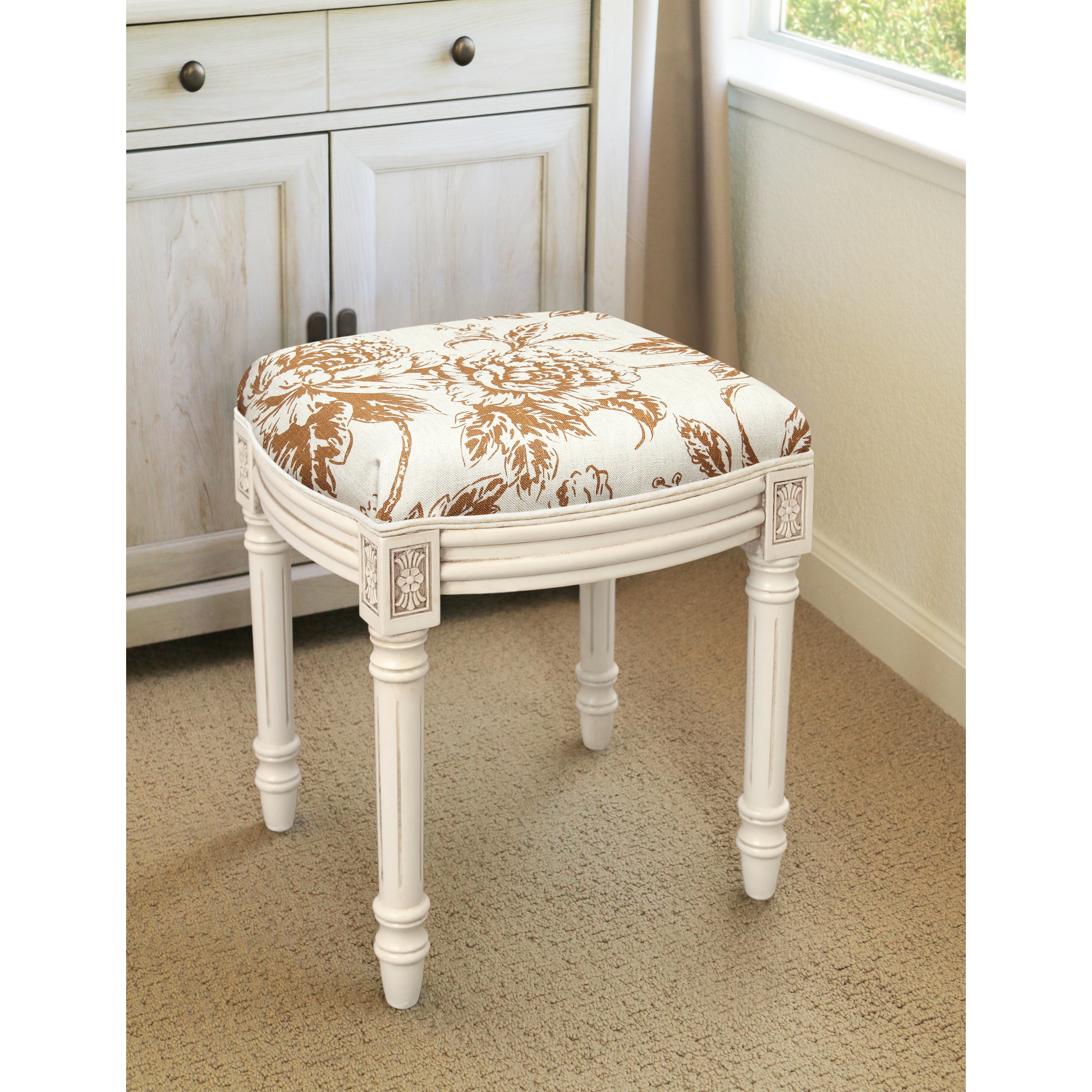 Gray Tuscan Floral Vanity Stool with antique white finish