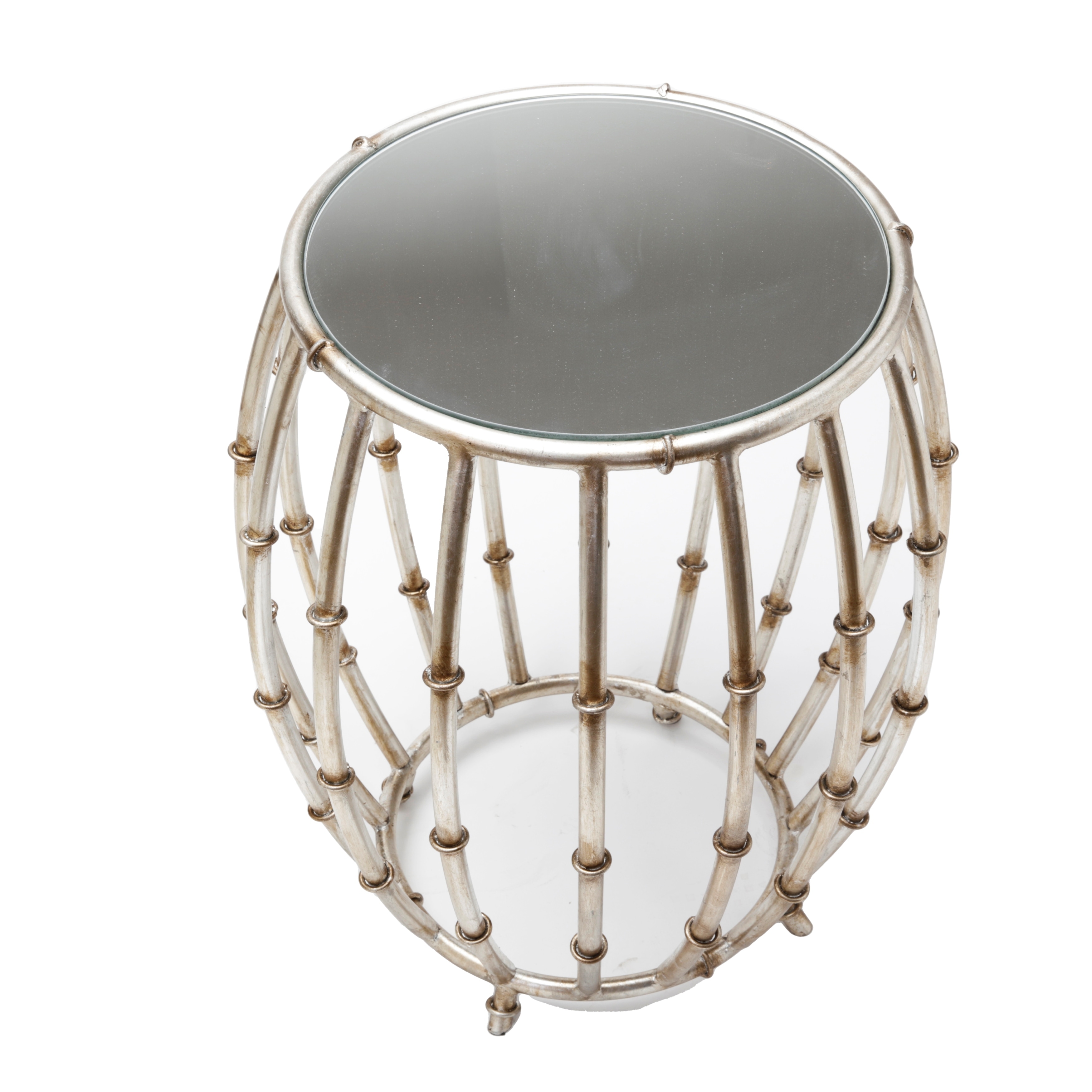 Antique Silver Bamboo Drum Table - 26x19x20
