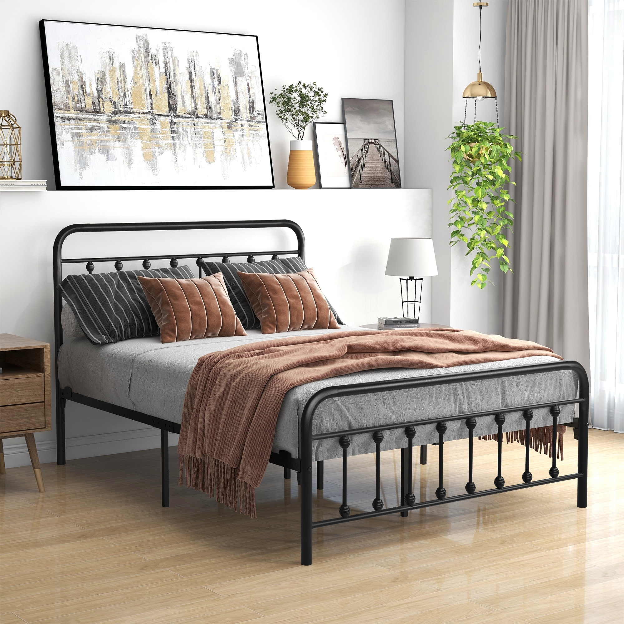 Platform Bed Frame with Headboard, Antique White- Just Have Full/Queen Size Bed