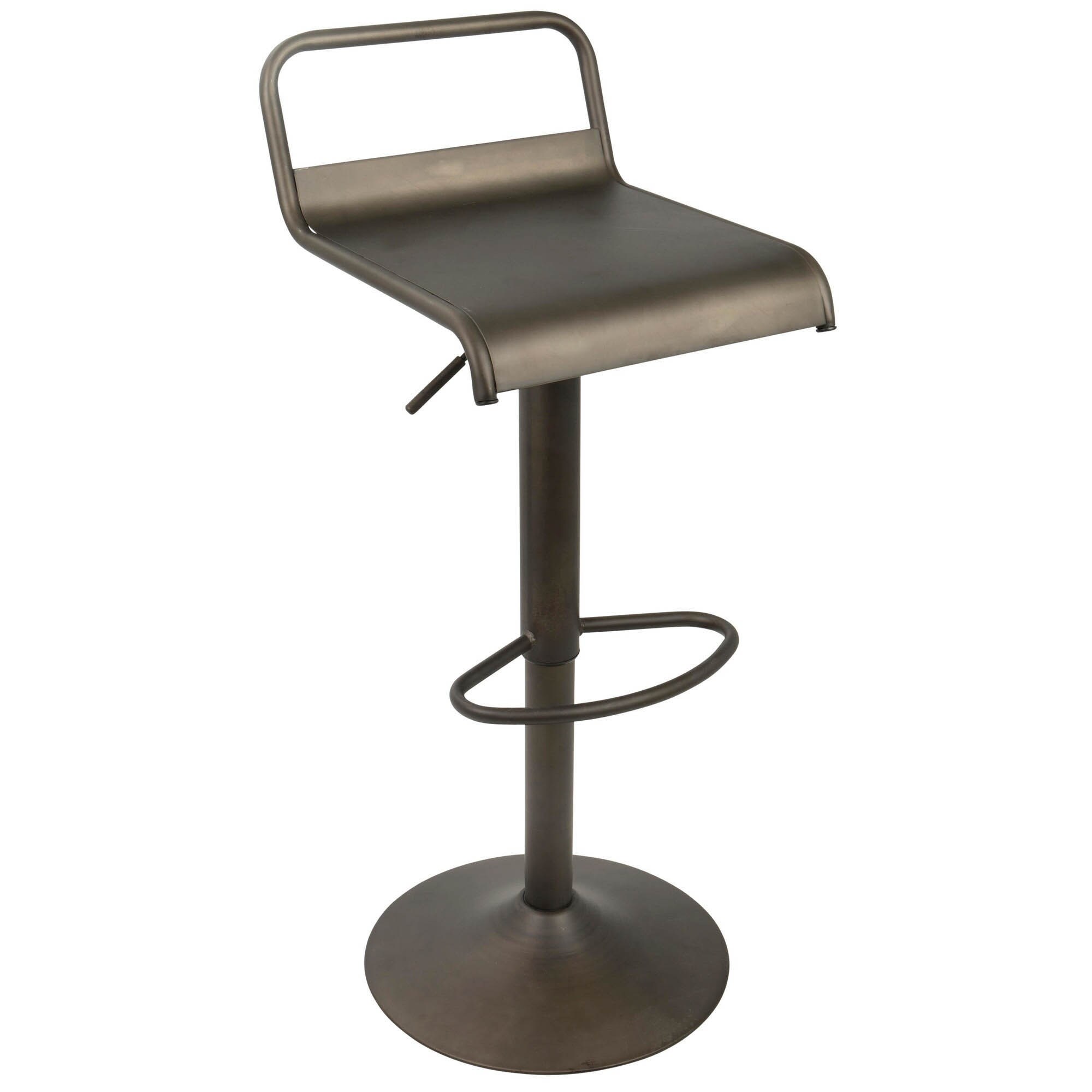 Lumisource Emery Industrial Adjustable Barstool with Swivel in Antique - 16.5"Lx15.5"Wx29.5-37.5"H