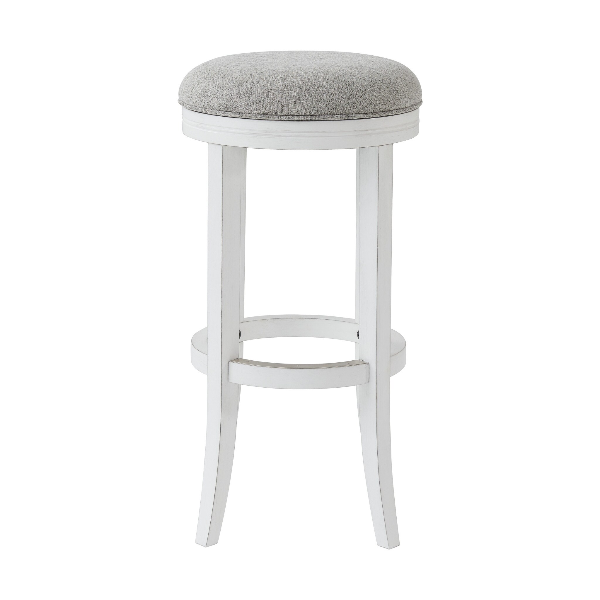30" Gray And Antiqued White Solid Wood Swivel Backless Bar Height Chair With Footrest - 17