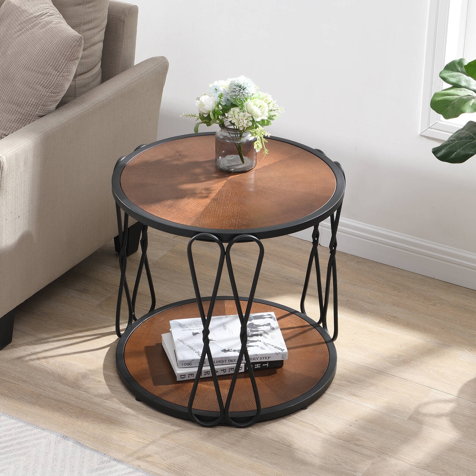 Round Wood Frame Side Table Coffee End Table Antique Black/Gold Living Room Bedroom
