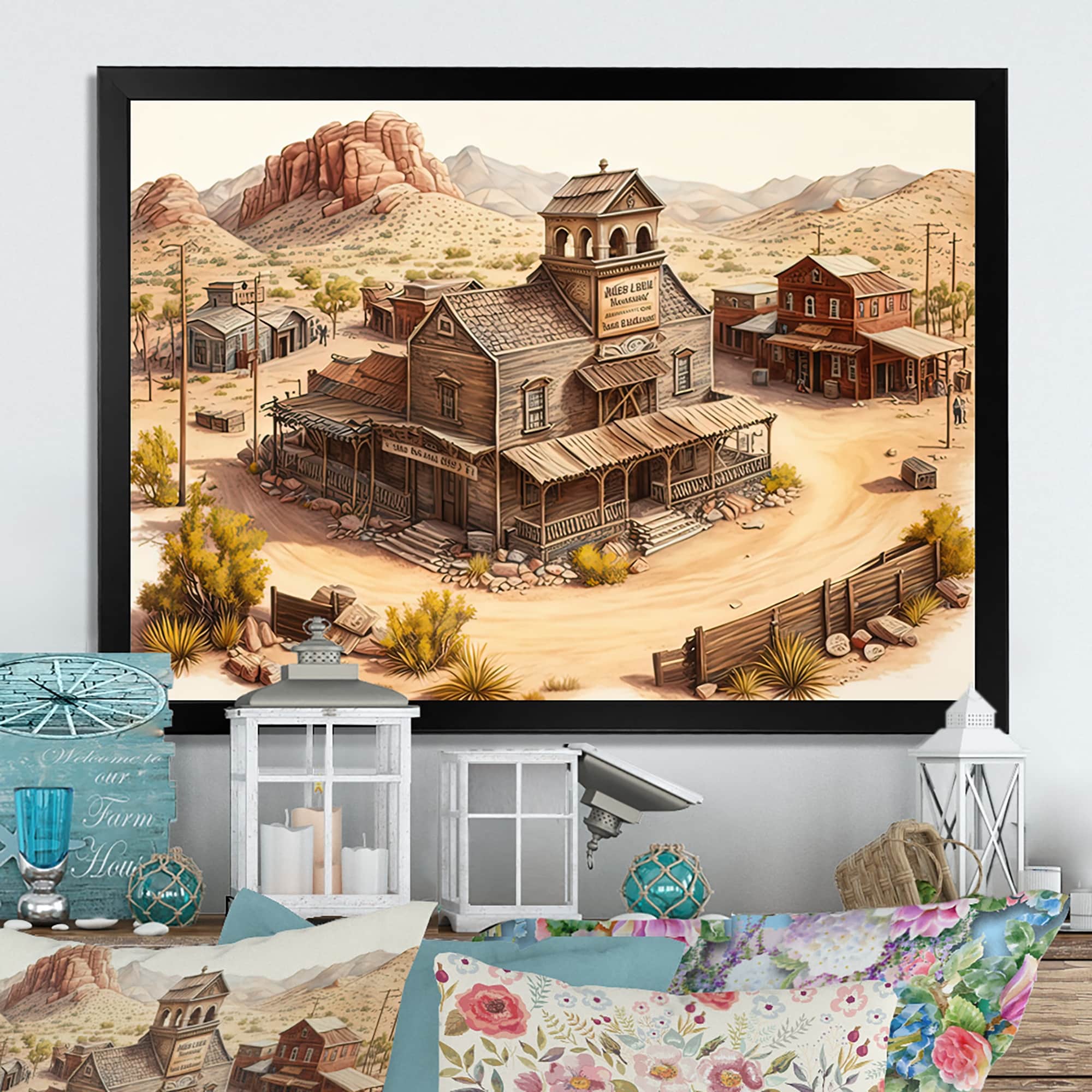Designart "Arizona Wild West Town I" Southwestern Framed Art Print