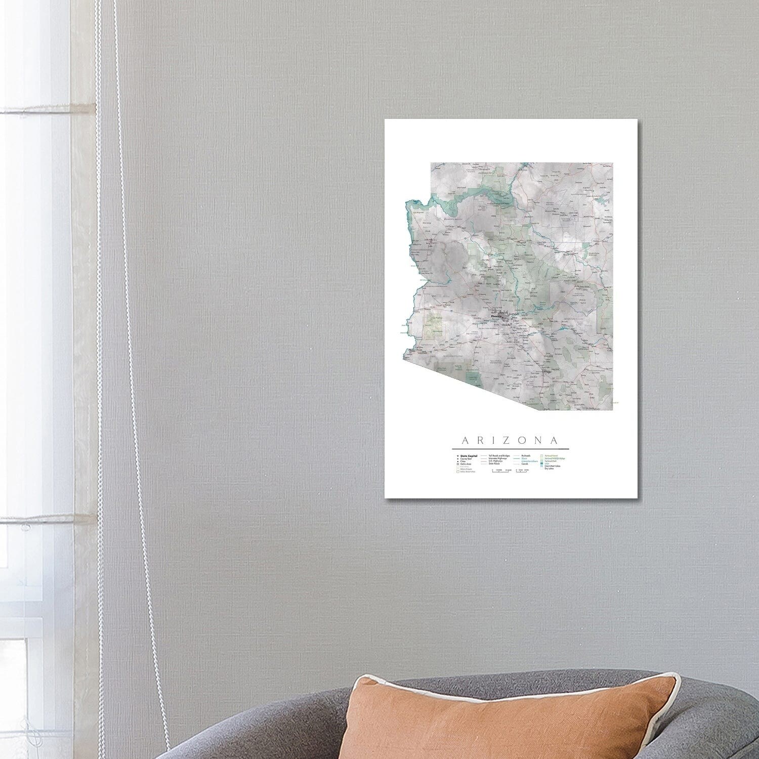 iCanvas "Detailed Map of Arizona" by blursbyai Canvas Print