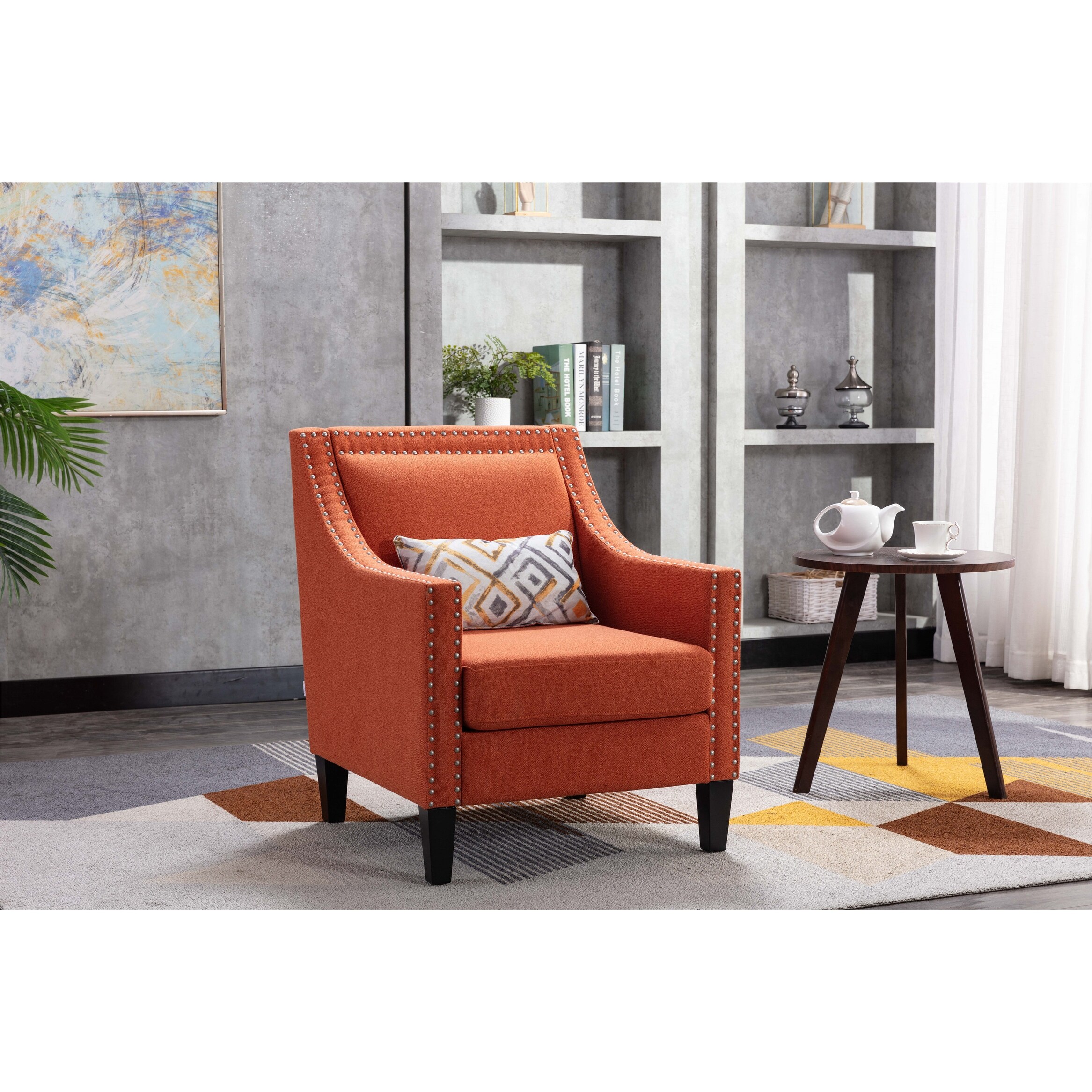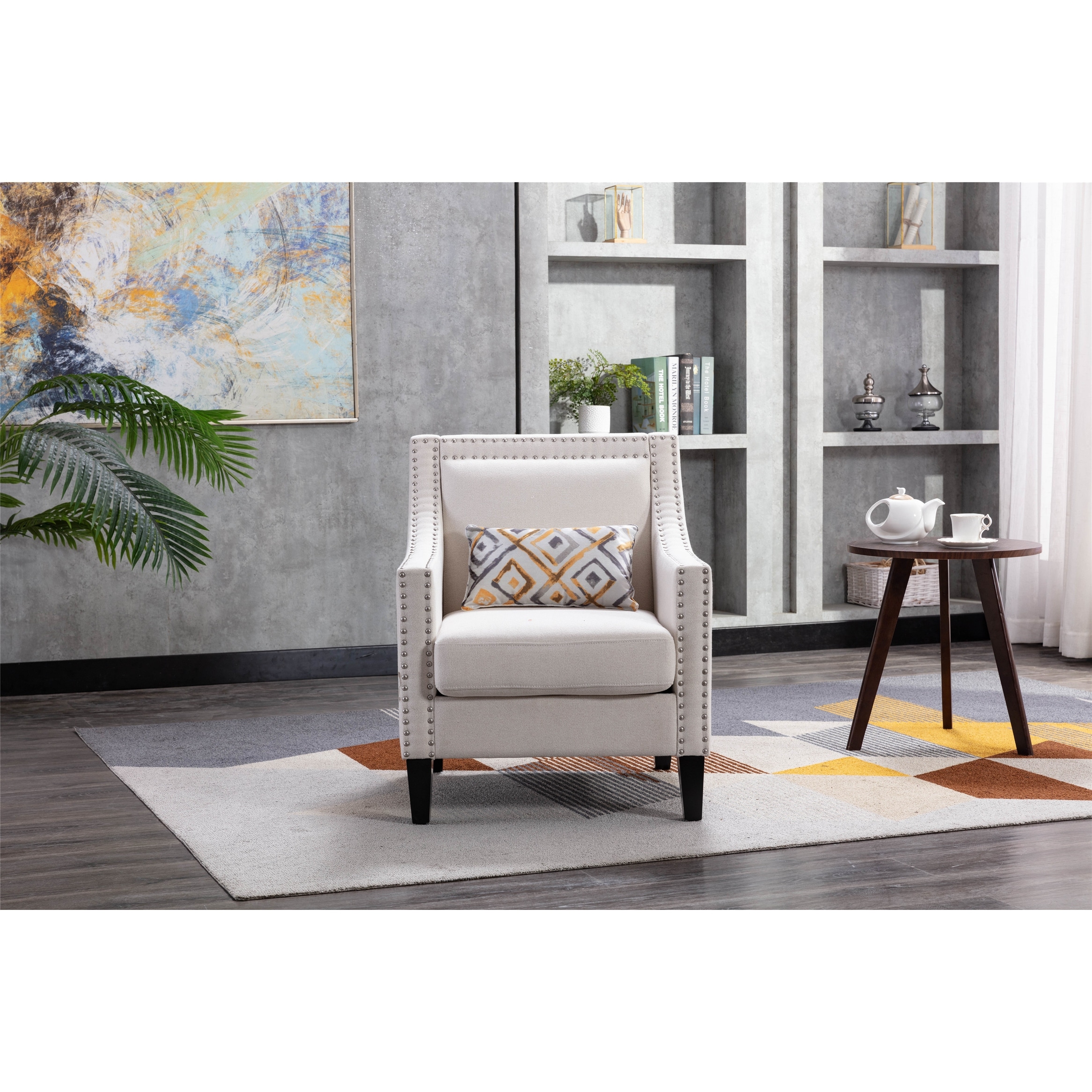 Accent Chair with Nailheads & Solid Wood Legs, Arm Chair with Throw Pillow