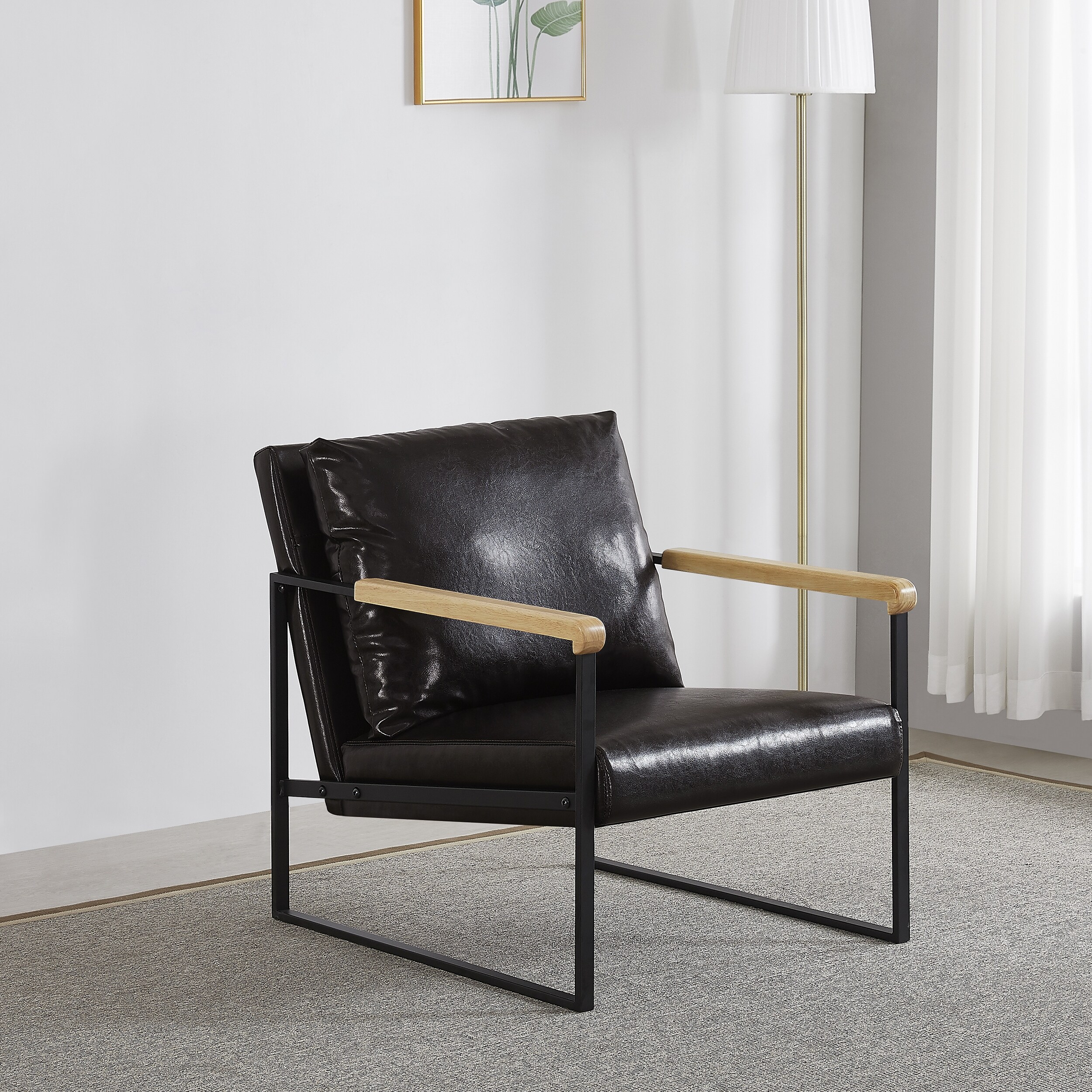 Faux Leather PU Upholstery Arm Chairs Accent Chair with Metal Frame and Wood Arms