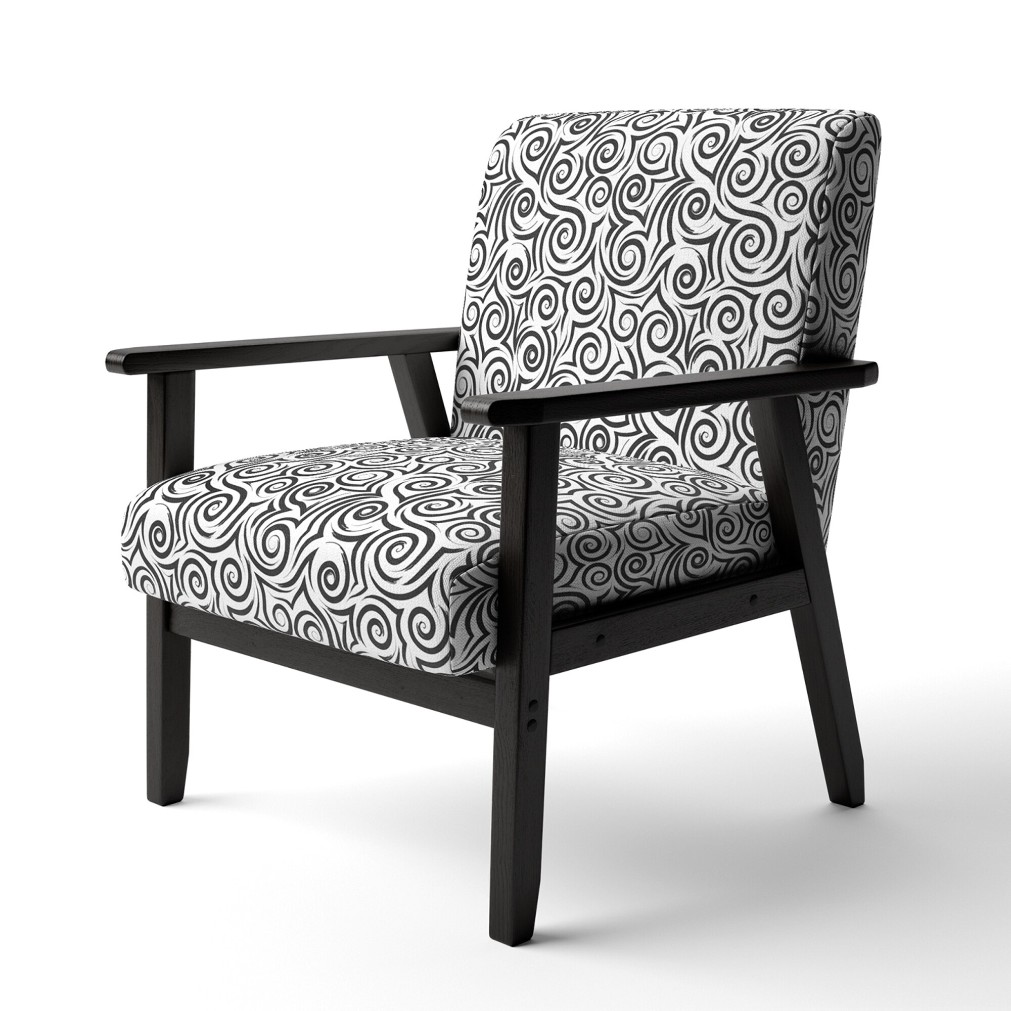 Designart "Black Curls Geometric" Upholstered Patterned Accent Chair and Arm Chair